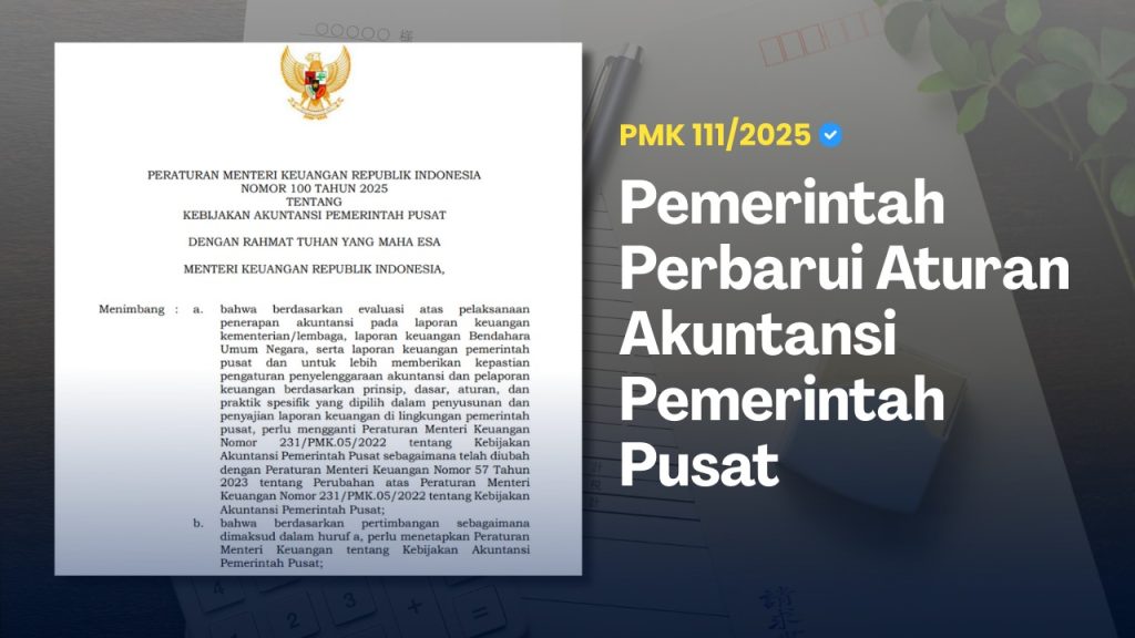 Jakarta — Pemerintah melalui Kementerian Keuangan resmi menetapkan Peraturan Menteri Keuangan (PMK) Nomor 100 Tahun 2025 tentang Kebijakan Akuntansi Pemerintah Pusat. Aturan ini menggantikan sepenuhnya PMK Nomor 231/PMK.05/2022 sebagaimana diubah dengan PMK Nomor 57 Tahun 2023, dan mulai digunakan dalam penyusunan laporan keuangan Tahun Anggaran 2025.