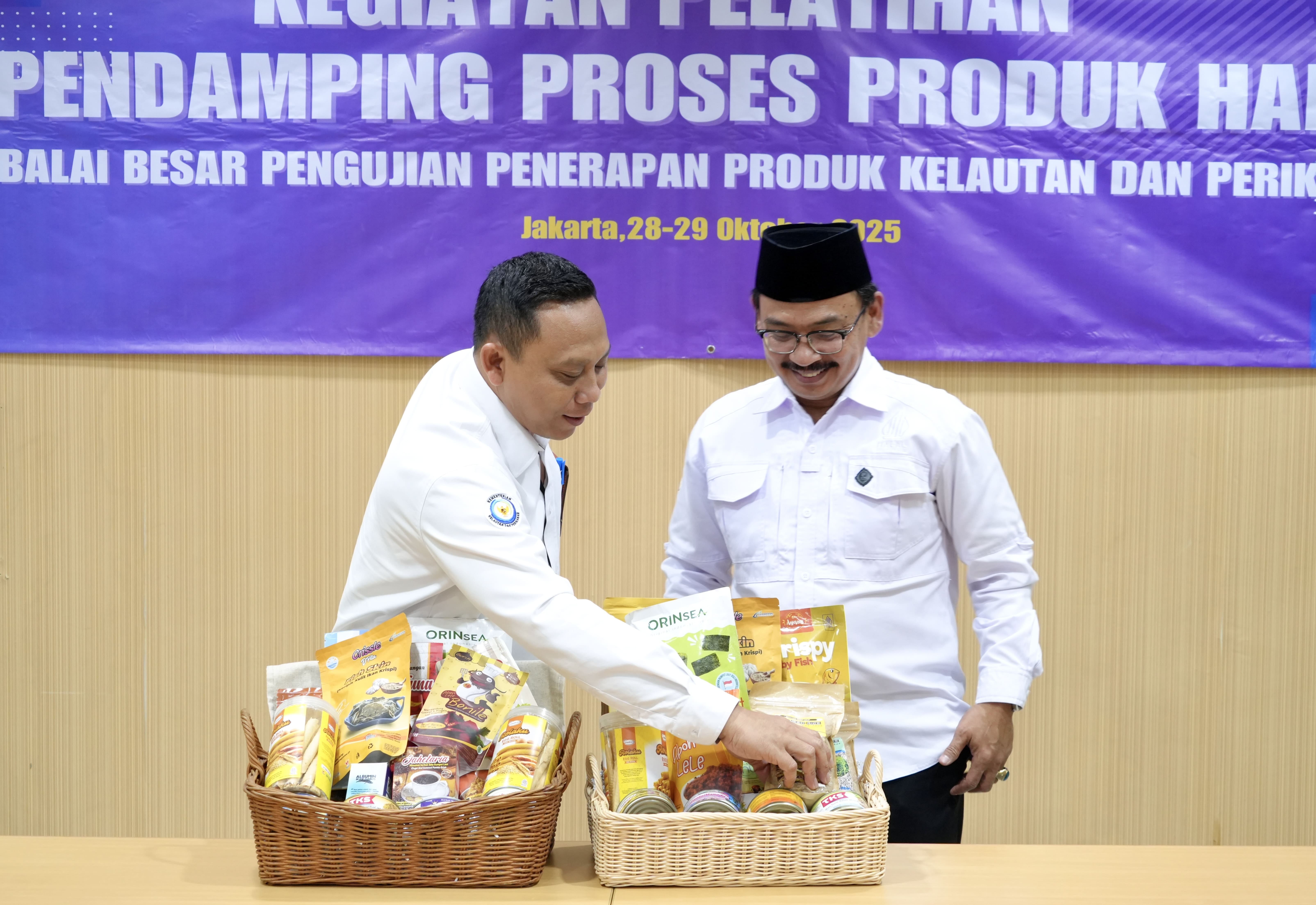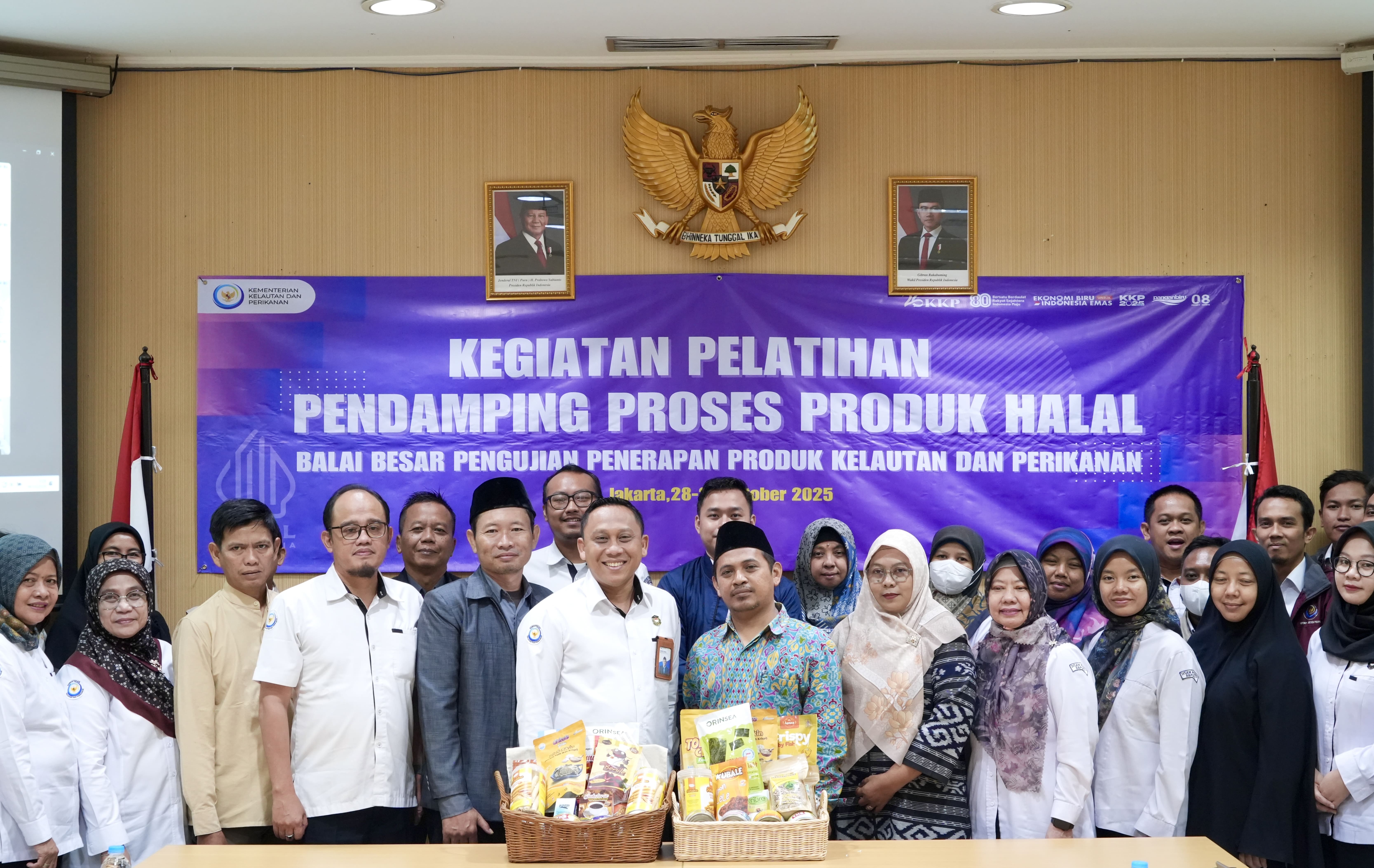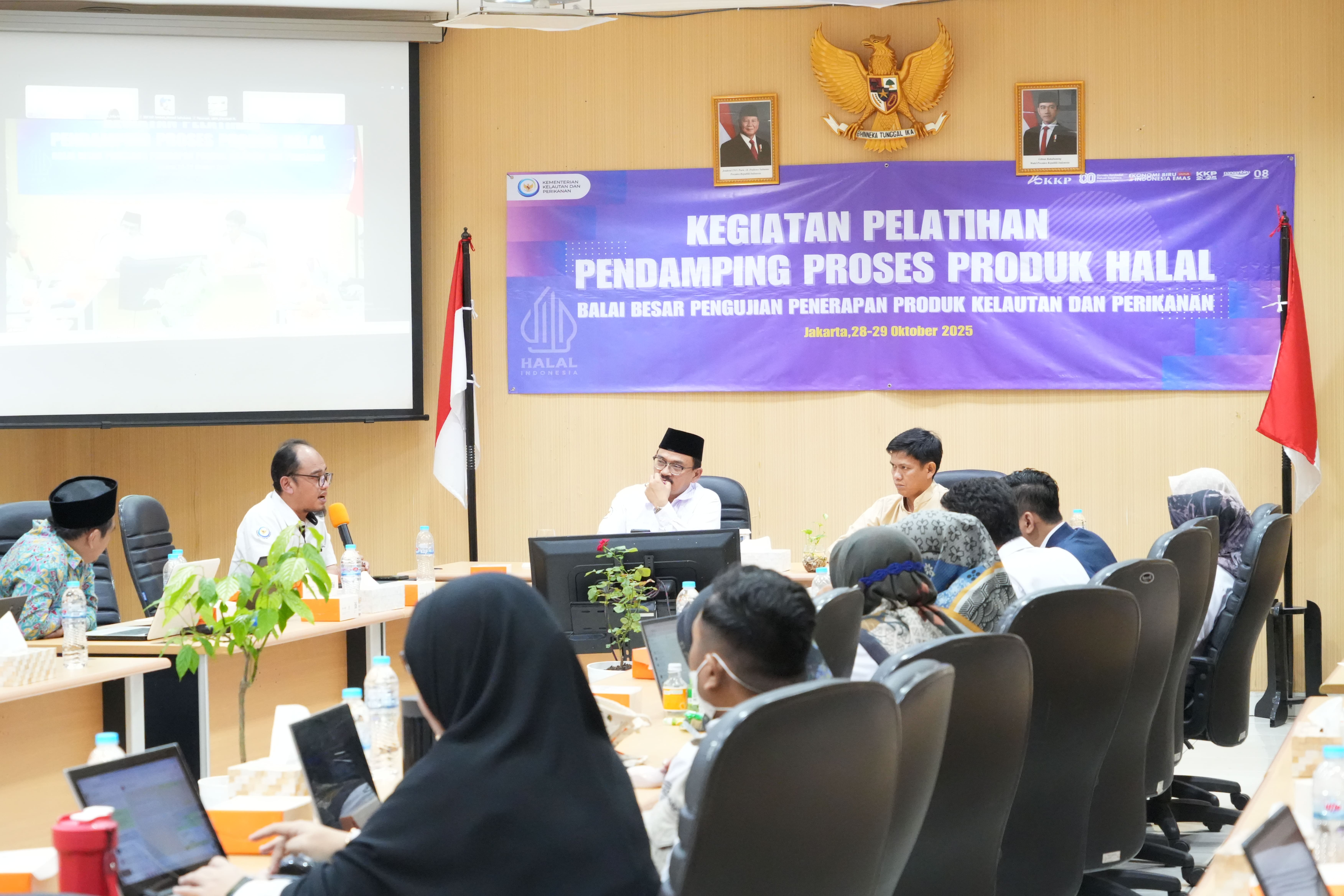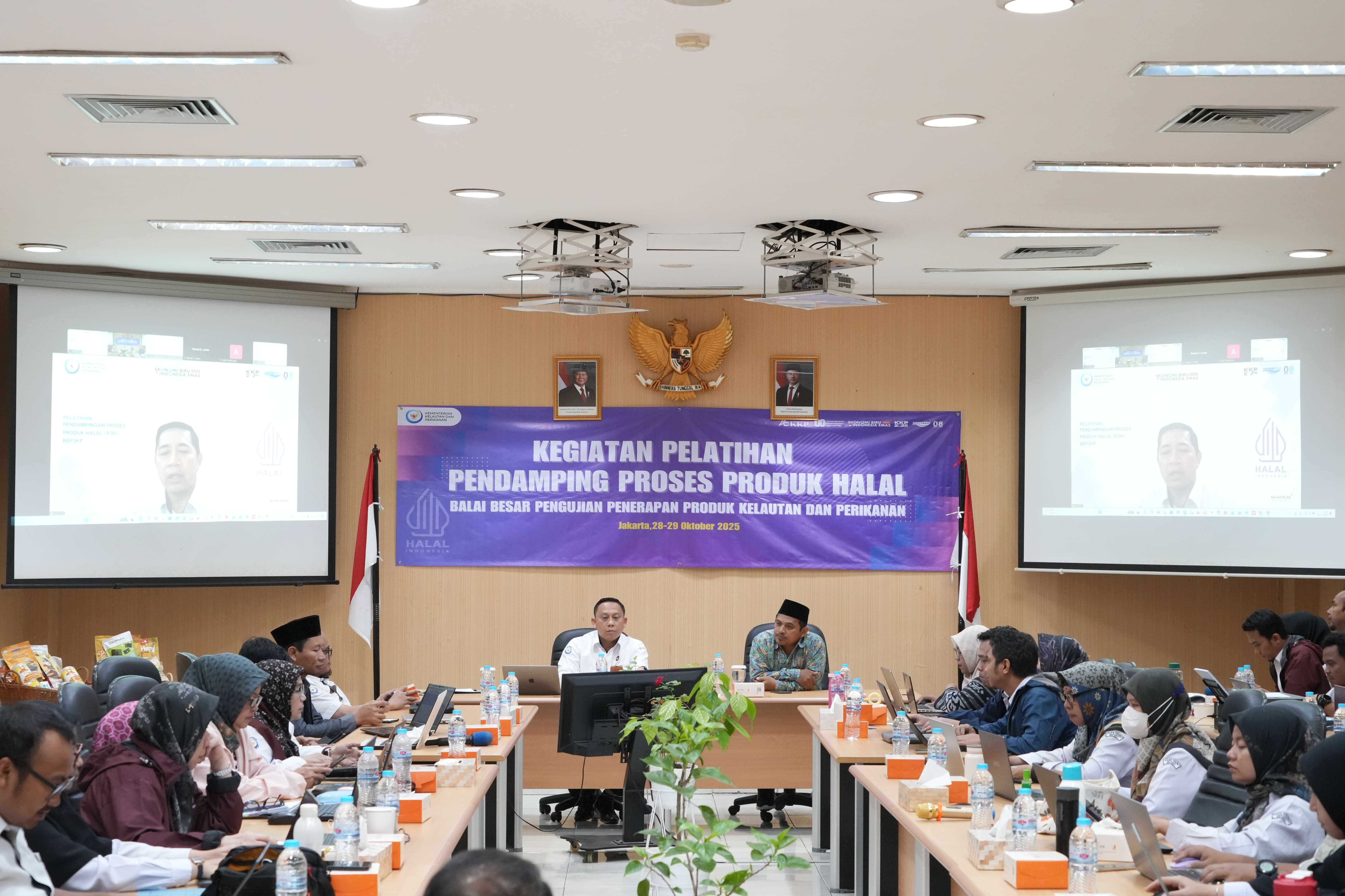 BBP3KP menggelar Pelatihan Pendamping Proses Produk Halal (P3H) secara hybrid pada tanggal 28-29 Oktober 2025. Kegiatan ini dibuka oleh Plt. Dirjen Penguatan Daya Saing Produk Kelautan dan Perikanan (PDSPKP) Machmud, S.P, M.Sc dan menghadirkan narasumber dari BPJPH serta Pusat Studi Halal LP3H UNUSIA. Sebanyak 64 calon pendamping halal dari berbagai instansi daerah dan internal KKP yang tersebar di 12 provinsi telah mengikuti pelatihan ini. Kepala BBP3KP Dr. Rahmadi Sunoko, S.Pi., M.Si menyatakan pelatihan ini merupakan bentuk komitmen BBP3KP dalam meningkatkan daya saing UMKM melalui sertifikasi halal.