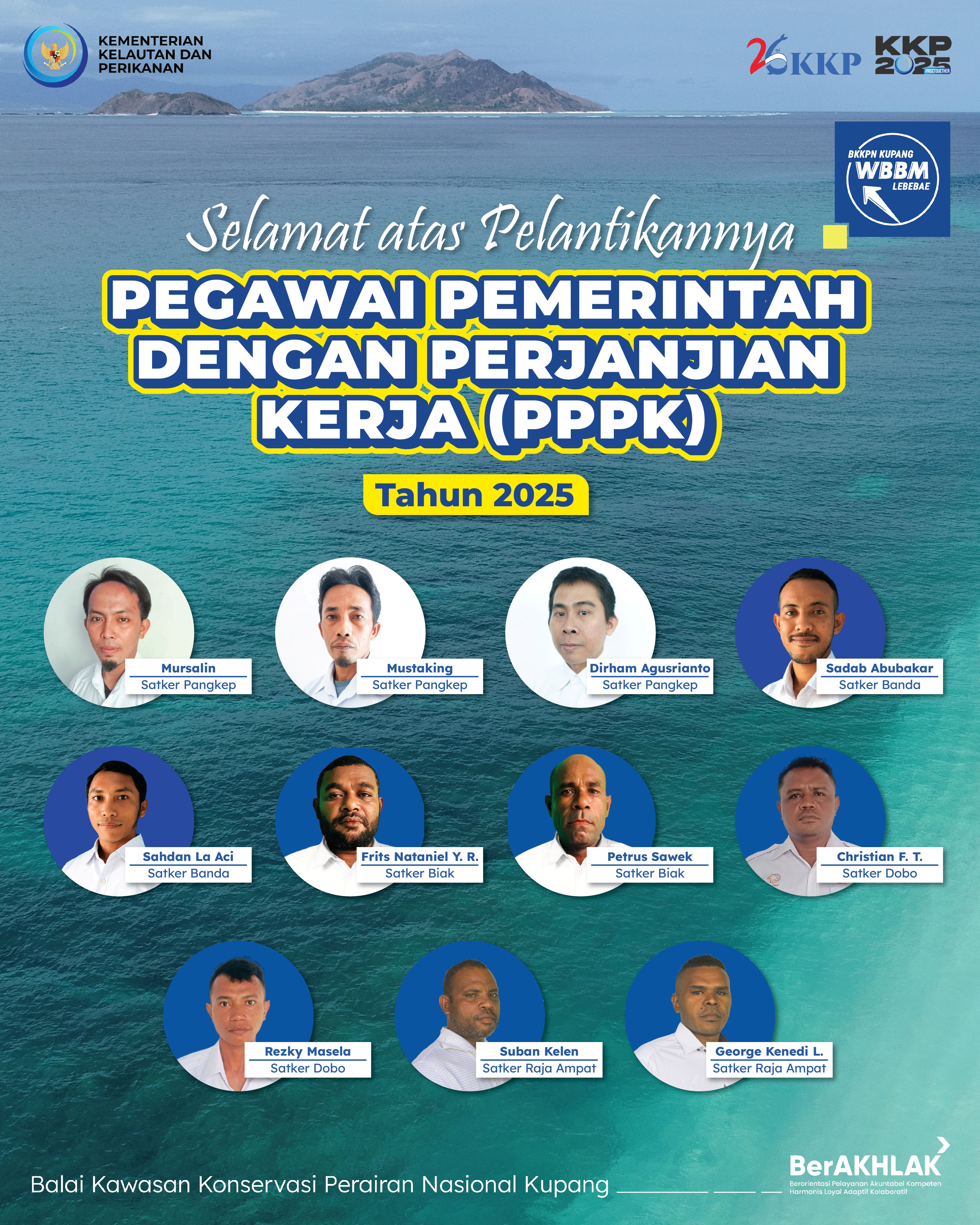 Selamat atas pelantikan Pegawai PPPK lingkup BKKPN Kupang. Semoga amanah baru ini membawa semangat, dedikasi, dan kontribusi nyata dalam menjaga serta mengelola kawasan konservasi perairan nasional untuk keberlanjutan sumber daya laut Indonesia