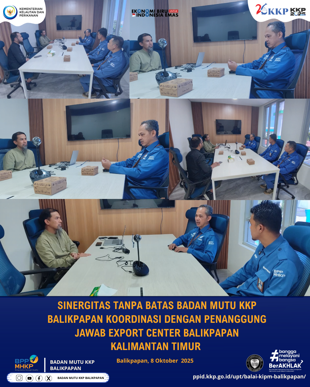 Haii..#sahabatbahari Sinergitas Tanpa Batas Badan Mutu KKP Balikpapan terus melakukan Koordinasi dengan Penanggung Jawab Export Center Balikpapan Kalimantan Timur, membahas terkait sosialisasi Sistem Jaminan Mutu kepada pelaku UMKM di Balikpapan Kalimantan Timur.
