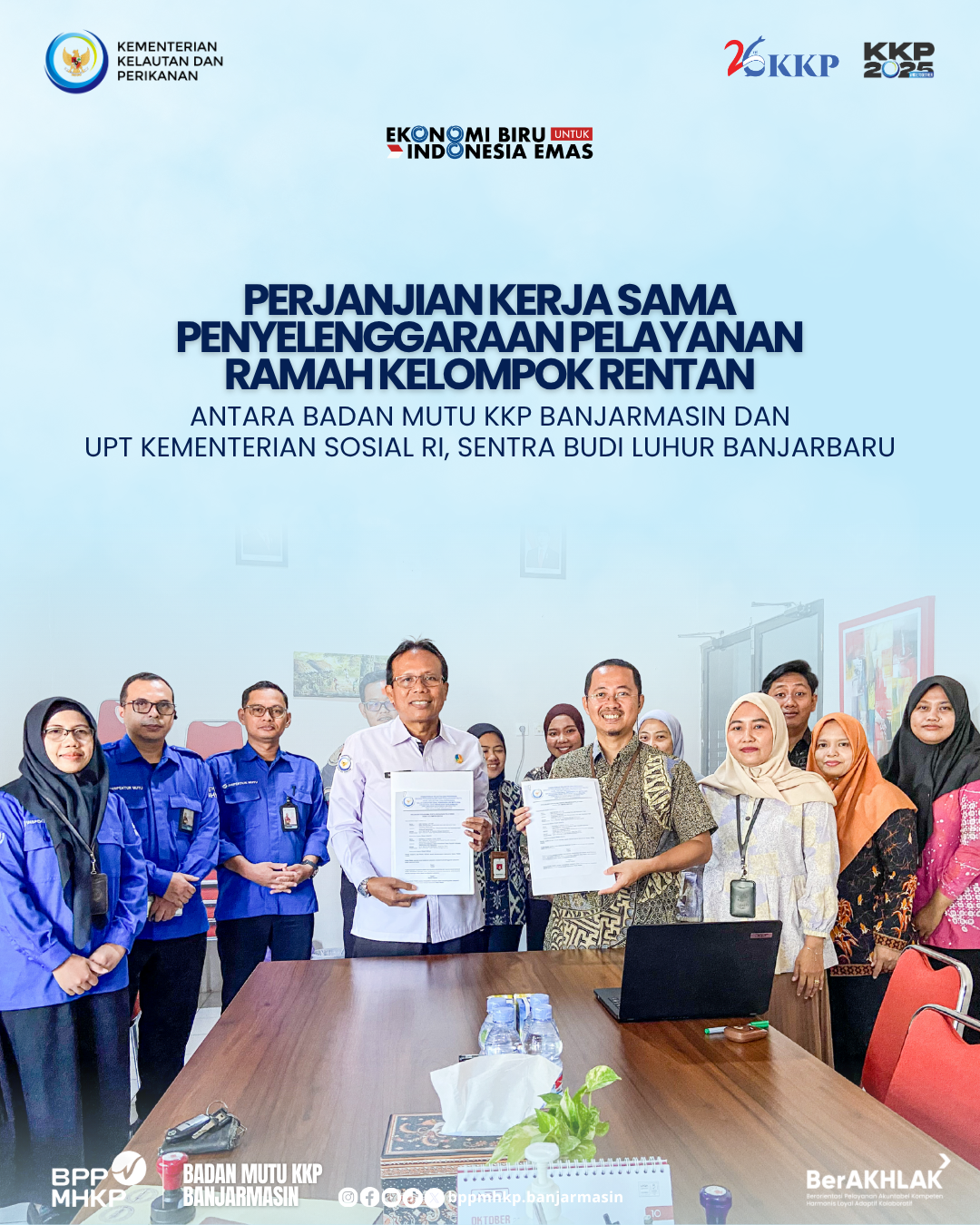 Pada 14 Oktober 2025, Badan Mutu KKP Banjarmasin bersama UPT Kementerian Sosial RI, Sentra Budi Luhur Banjarbaru menandatangani Perjanjian Kerja Sama (PKS) dalam penyelenggaraan pelayanan publik yang ramah bagi kelompok rentan.