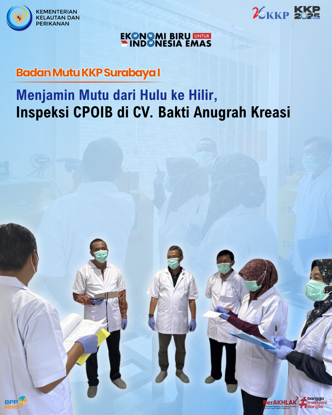 Sebagai bagian dari komitmen menjaga mutu dan keamanan produk perikanan, Tim Inspektur Mutu Badan Mutu KKP Surabaya I melaksanakan kegiatan inspeksi sertifikasi CPOIB di CV. Bakti Anugrah Kreasi, Malang.