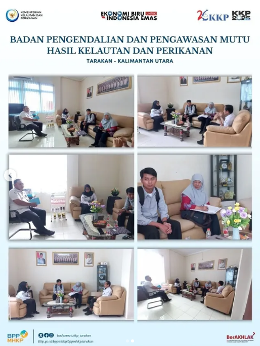 Tarakan, (06/11) Kegiatan Badan Mutu KKP Tarakan, Kalimantan Utara - Dalam upaya meningkatkan daya saing dan kualitas produk perikanan wilayah perbatasan, Dinas Perikanan Kabupaten Nunukan hari ini melaksanakan koordinasi intensif dengan Unit Pelaksana Teknis (UPT) Badan Pengendalian dan Pengawasan Mutu Hasil Kelautan dan Perikanan (BPPMHKP) Tarakan. Pertemuan yang berlangsung di kantor UPT BPPMHKP ini berfokus membahas langkah strategis untuk memastikan produk perikanan Nunukan, baik hasil budidaya maupun tangkapan, memenuhi standar mutu Nasional dan Internasional, mengingat posisi krusial Nunukan sebagai gerbang utama ekspor perikanan di Kalimantan Utara.