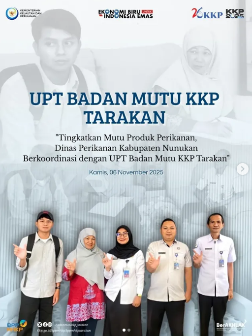 Tarakan, (06/11) Kegiatan Badan Mutu KKP Tarakan, Kalimantan Utara - Dalam upaya meningkatkan daya saing dan kualitas produk perikanan wilayah perbatasan, Dinas Perikanan Kabupaten Nunukan hari ini melaksanakan koordinasi intensif dengan Unit Pelaksana Teknis (UPT) Badan Pengendalian dan Pengawasan Mutu Hasil Kelautan dan Perikanan (BPPMHKP) Tarakan. Pertemuan yang berlangsung di kantor UPT BPPMHKP ini berfokus membahas langkah strategis untuk memastikan produk perikanan Nunukan, baik hasil budidaya maupun tangkapan, memenuhi standar mutu Nasional dan Internasional, mengingat posisi krusial Nunukan sebagai gerbang utama ekspor perikanan di Kalimantan Utara.