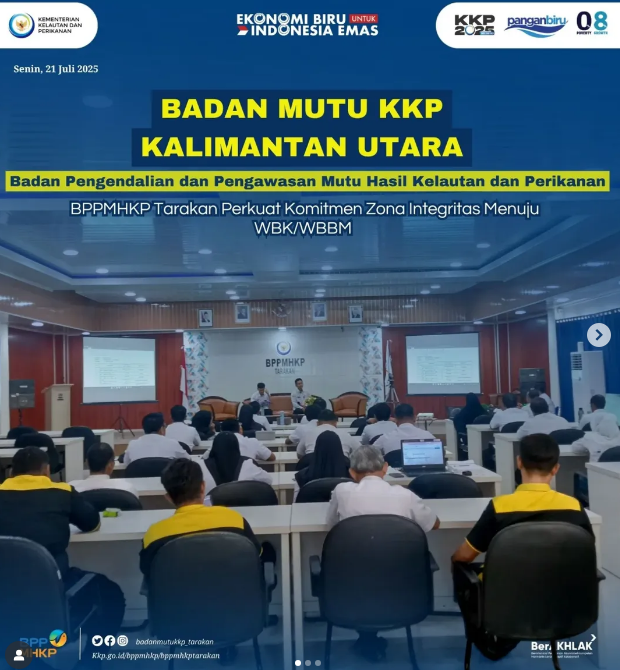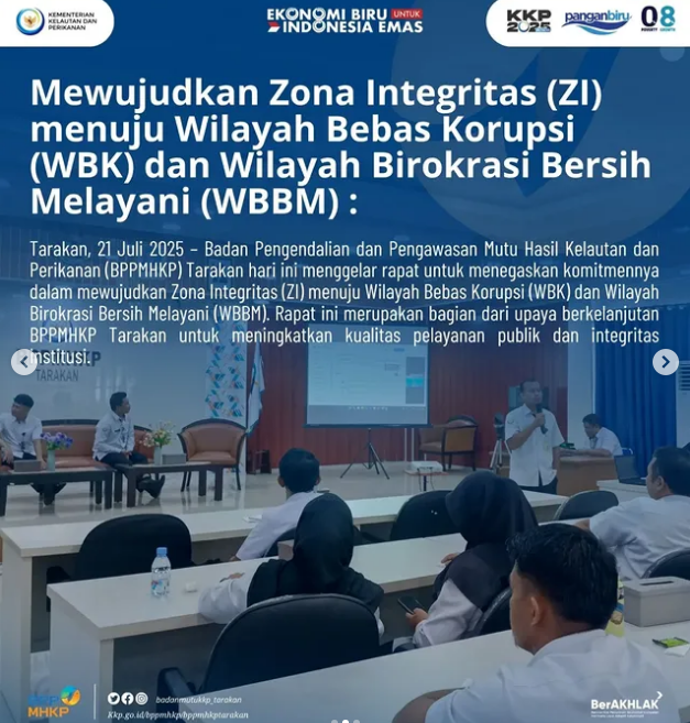 Tarakan, (21/07) - Badan Pengendalian dan Pengawasan Mutu Hasil Kelautan dan Perikanan (BPPMHKP) Tarakan hari ini menggelar rapat untuk menegaskan komitmennya dalam mewujudkan Zona Integritas (ZI) menuju Wilayah Bebas Korupsi (WBK) dan Wilayah Birokrasi Bersih Melayani (WBBM). Rapat ini merupakan bagian dari upaya berkelanjutan BPPMHKP Tarakan untuk meningkatkan kualitas pelayanan publik dan integritas institusi.