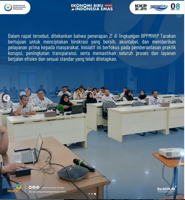 Dalam rapat tersebut, ditekankan bahwa penerapan ZI di lingkungan BPPMHKP Tarakan bertujuan untuk menciptakan birokrasi yang bersih, akuntabel, dan memberikan pelayanan prima kepada masyarakat. Inisiatif ini berfokus pada pemberantasan praktik korupsi, peningkatan transparansi, serta memastikan seluruh proses dan layanan berjalan efisien dan sesuai standar yang ditetapkan.
