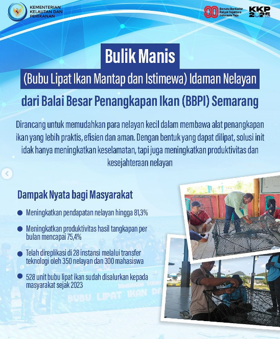 3 inovasi ini adalah LoCaFeed Community (LFC), BINA BOS PANEN (Budidaya Ikan Nila Bioflok Metode Sipanen), dan Bulik Manis (Bubu Lipat Ikan Mantap dan Istimewa) Idaman Nelayan