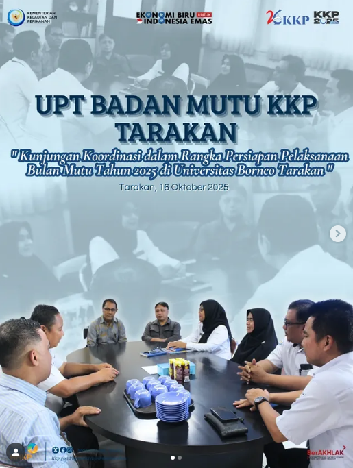 Kamis, (16/10) - Kegiatan Sinergi antara Badan Mutu KKP Tarakan dan Universitas Borneo Tarakan (UBT) semakin erat melalui koordinasi persiapan kegiatan "Goes To Campus". Bulan Mutu BPPMHKP ini akan menjadi platform untuk mensosialisasikan pentingnya peningkatan mutu di sektor kelautan dan perikanan. Melalui kolaborasi ini, Badan Mutu KKP Tarakan bertekad mengedukasi generasi muda mengenai standar mutu demi kemajuan sektor kelautan dan perikanan di masa depan.