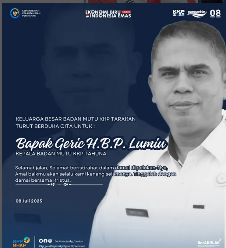 Keluarga Besar BPPMHKP Tarakan Turut Berduka Cita atas berpulangnya Bapak Geric H.B.P. Lumia _ selaku Kepala Badan Mutu KKP Tahuna