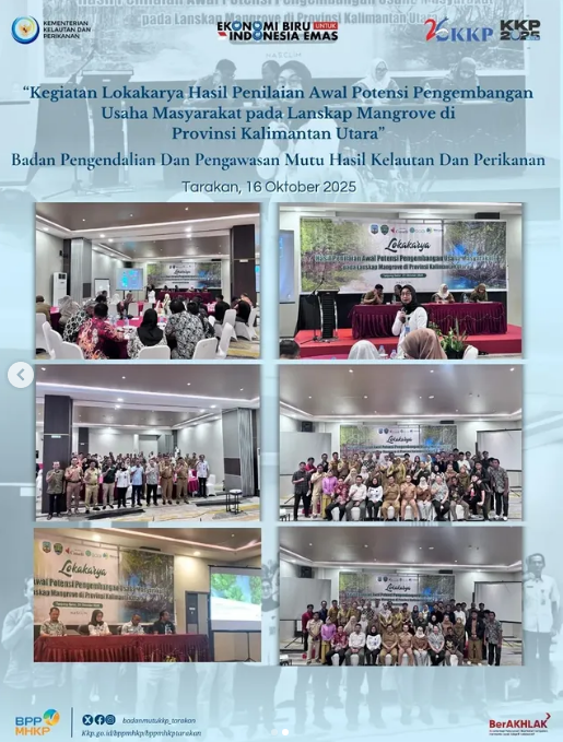 Tarakan (21/10) - Pelaksana Tugas (Plt.) Kepala UPT Badan Mutu KKP Tarakan hari ini turut menghadiri Lokakarya Hasil Penilaian Awal Potensi Pengembangan Usaha Masyarakat pada Lanskap Mangrove di Provinsi Kalimantan Utara yang diinisiasi oleh Global Green Growth Institute (GGGI), NASCLIM, dan WETLANDS bekerja sama dengan Pemerintah Kabupaten Bulungan. Acara dibuka secara resmi oleh Bupati Bulungan, Bapak Syarwani, S.Pd, M.Si.