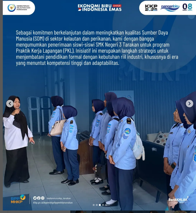 SMK Negeri 3 Tarakan berupaya meningkatkan kualitas Sumber Daya Manusia (SDM) di sektor kelautan dan perikanan melalui program Praktik Kerja Lapangan (PKL) selama 6 Bulan terhitung Bulan Juli s/d Desember 2025.