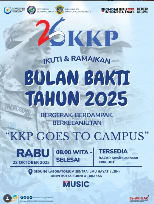 🔥Jangan sampai terlewat! Universitas Borneo Tarakan siap menjadi pusat perubahan positif di Bulan Bakti KKP Tahun 2025! Segera bergabung dalam KKP Goes to Campus untuk Bergerak, Berdampak, dan Berkelanjutan. Kehadiran dan kontribusi Anda sangat berarti 😉🤝