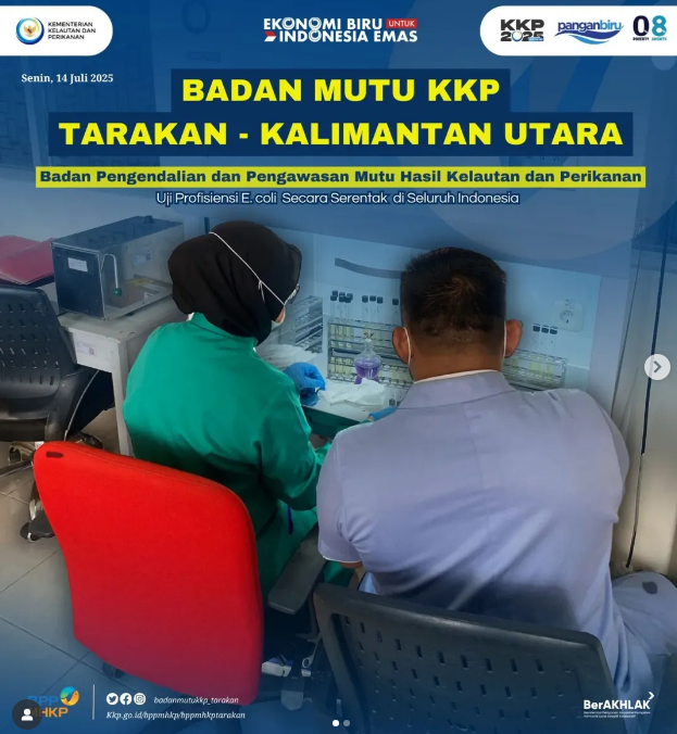 Hai #sahabatbahari🖐 (14/07) - Badan Mutu KKP Tarakan mengikuti Uji Profisiensi E. coli secara serentak seluruh Indonesia di Laboratorium Badan Mutu KKP Tarakan. Kegiatan penting ini adalah bagian dari upaya berkelanjutan untuk menjaga kualitas dan akurasi analis laboratorium dalam melakukan pengujian mikrobiologi e.coli. Pelaksanaan uji profisiensi ini secara tegas menunjukkan komitmen Badan Mutu KKP Tarakan dalam memastikan keakuratan hasil pengujian, khususnya untuk parameter mikrobiologi yang sangat krusial dalam keamanan pangan.