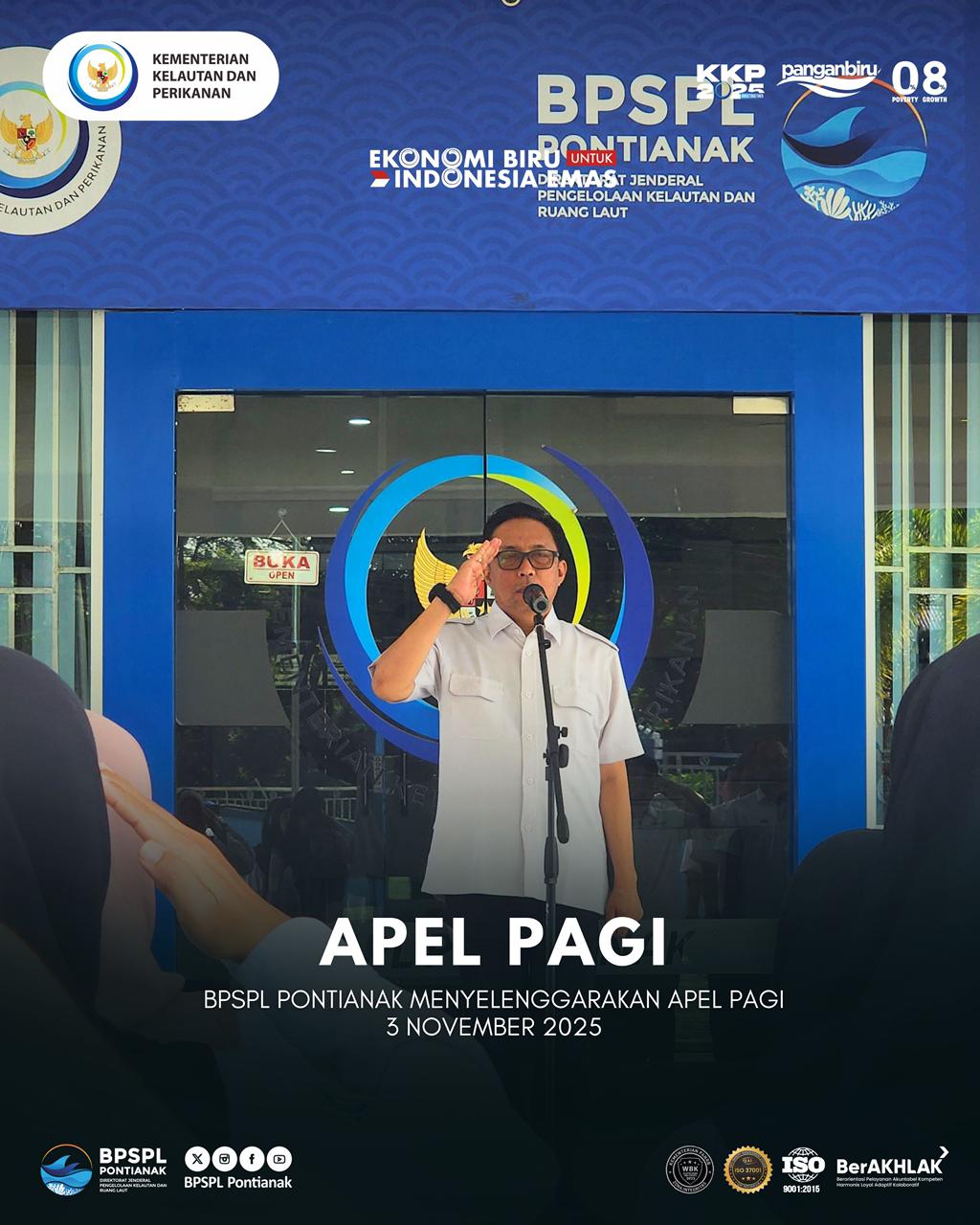 Senin (3/11), BPSPL Pontianak melaksanakan apel pagi yang dipimpin langsung oleh Kepala BPSPL Pontianak, Bapak Syarif Iwan Taruna Alkadrie, S.T., M.Si. Dalam arahannya, beliau menekankan pentingnya kesiapan seluruh tim dalam menghadapi berbagai kegiatan akhir tahun yang akan segera berjalan.