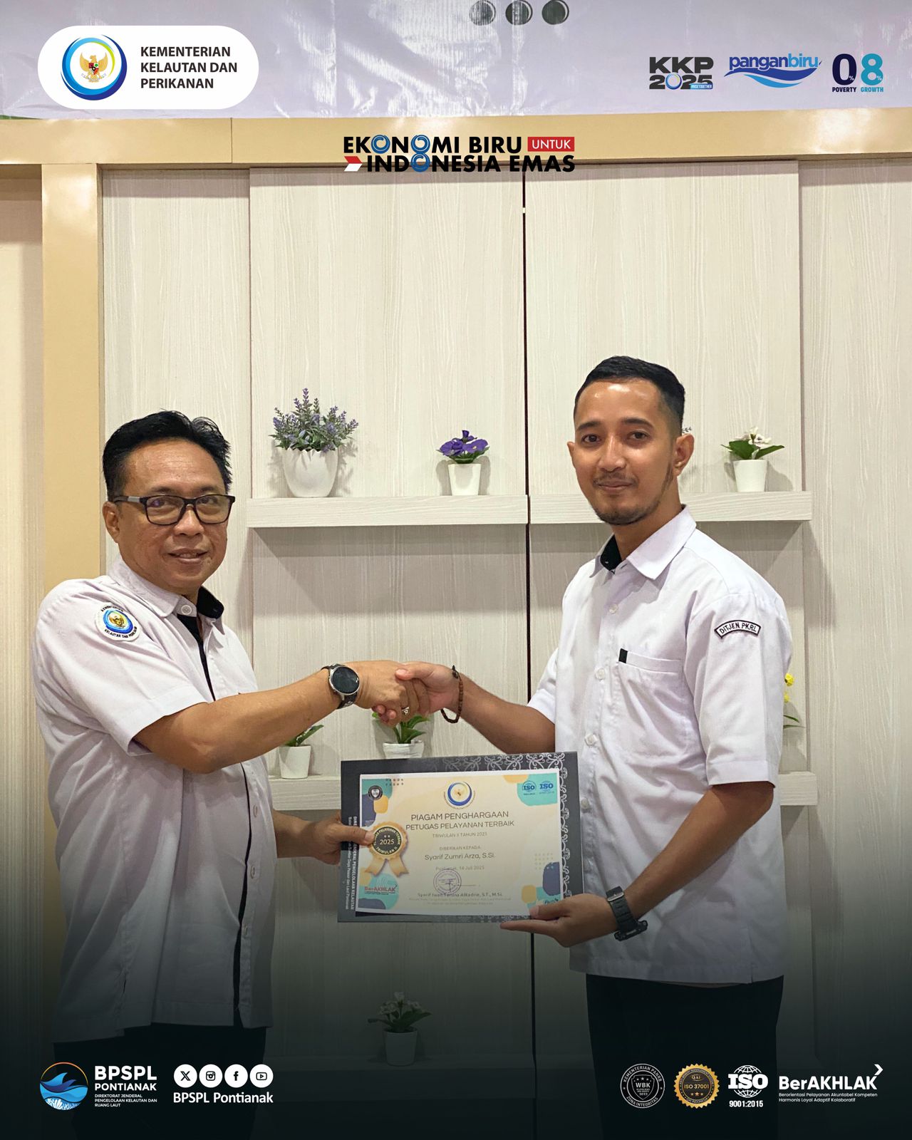 Atas terpilihnya sebagai Petugas Pelayanan Terbaik Triwulan II Tahun 2025 di lingkungan BPSPL Pontianak.