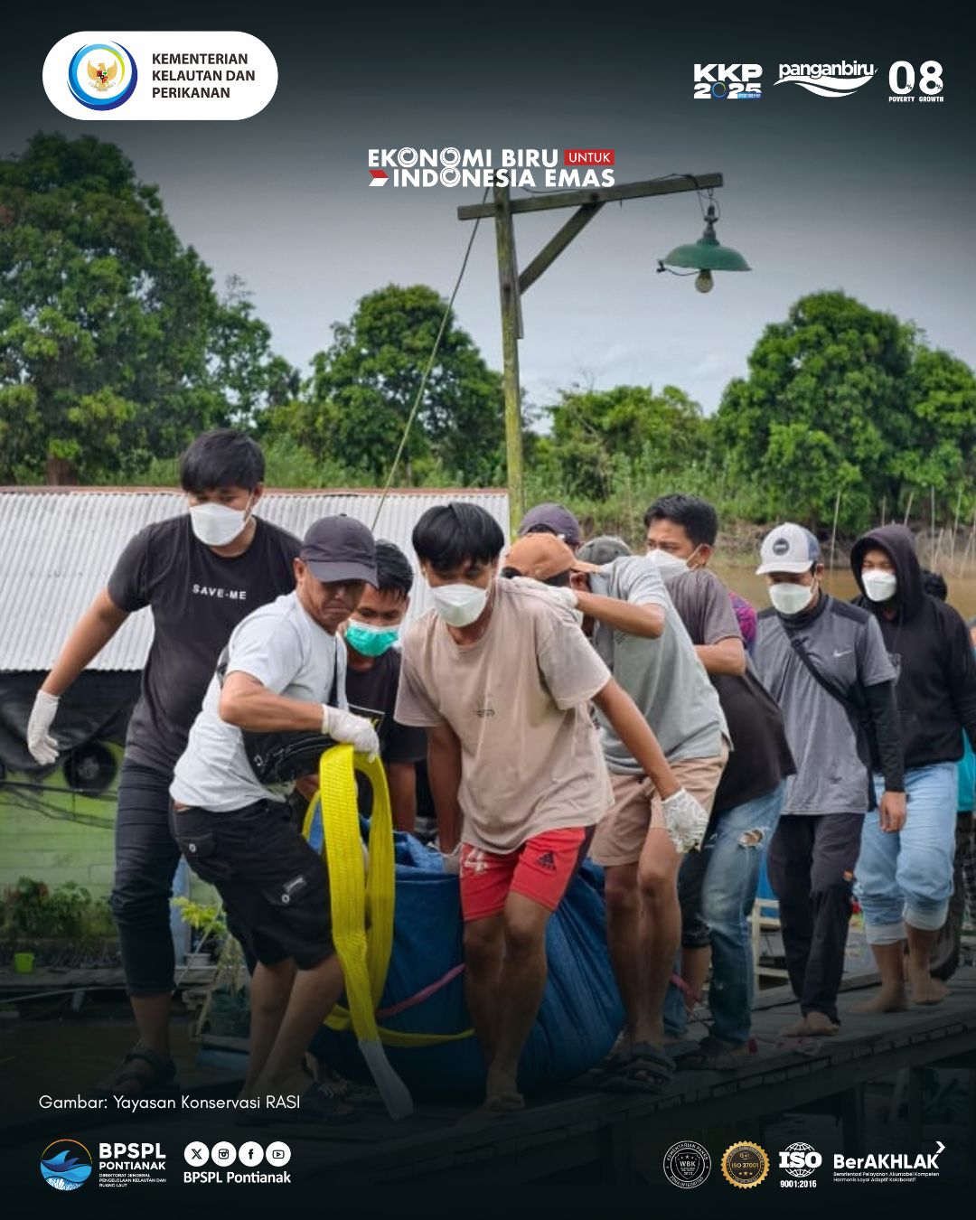 Rabu (5/11), BPSPL Pontianak Wilker Mahakam Hulu bersama Yayasan Konservasi RASI dan masyarakat di sekitar kawasan konservasi melakukan respon cepat penanganan terhadap temuan bangkai Pesut Mahakam (Orcaella brevirostris) yang tersangkut di keramba masyarakat di Dusun Kuyung, Desa Sebemban, Kecamatan Muara Wis.
