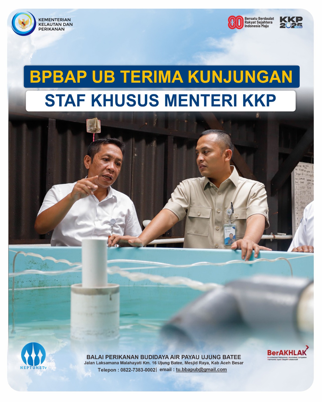 Kunjungan ini bertujuan untuk mempererat silaturahmi antara Kementerian Kelautan dan Perikanan dengan BPBAP Ujung Batee. Kehadiran beliau disambut hangat oleh Kepala BPBAP Ujung Batee, Bapak Wawan, beserta seluruh jajaran pegawai.