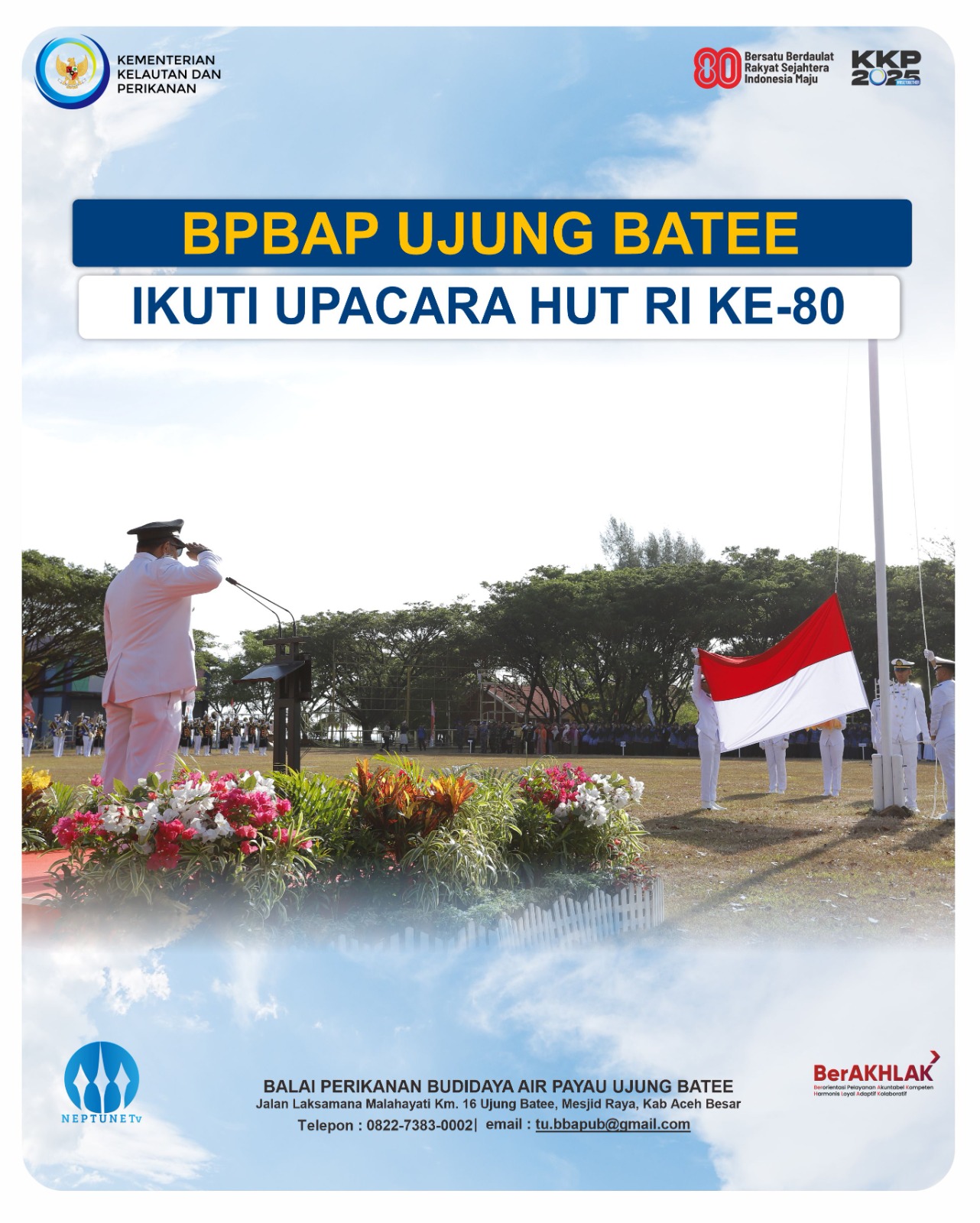 Dalam rangka memperingati Hari Ulang Tahun Republik Indonesia (HUT RI) ke-80, seluruh pegawai Balai Perikanan Budidaya Air Payau (BPBAP) Ujung Batee mengikuti upacara bendera yang dilaksanakan di Politeknik Pelayaran (Poltekpel) Malahayati.