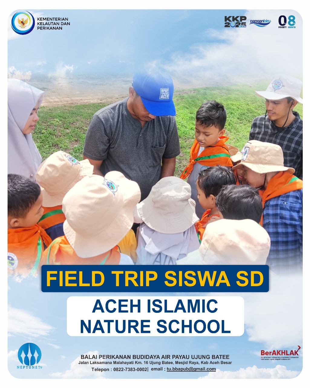 Balai Perikanan Budidaya Air Payau (BPBAP) Ujung Batee menerima kunjungan field trip sebanyak 12 siswa kelas 2 Sekolah Dasar Aceh Islamic Nature School. Kunjungan ini bertujuan untuk mengenalkan dunia perikanan budidaya sejak dini, khususnya mengenai ikan nila dan udang vaname yang menjadi komoditas unggulan di BPBAP Ujung Batee.