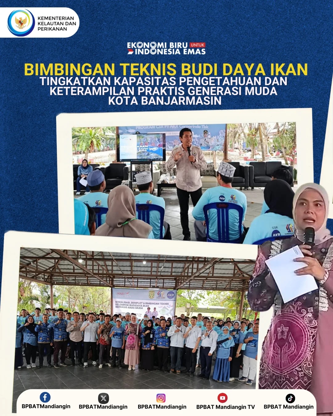 Banjarmasin 17/9/2025, Balai Perikanan Budidaya Air Tawar Mandiangin melalui tim teknisnya berkesempatan menjadi narasumber pada Bimbingan Teknis Budi Daya Ikan yang diselenggarakan oleh Sobat Kelabau (lembaga Kelompok Kerja Pemberdayaan Usaha Perikanan) Kota Banjarmasin.