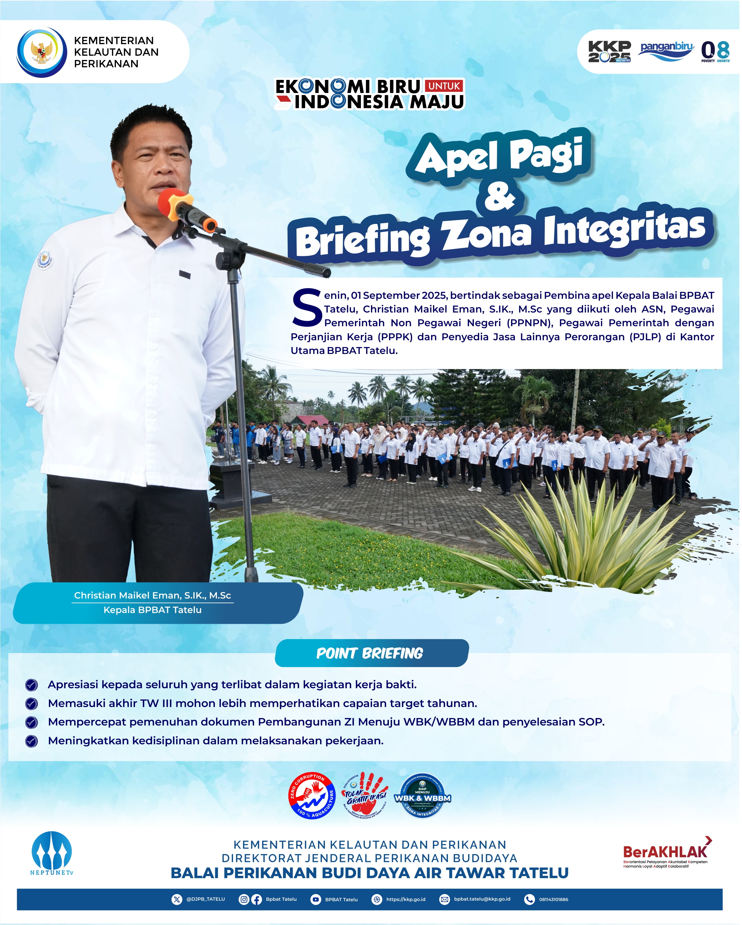 Apel Pagi dan Briefing Zona Integritas BPBAT Tatelu, Senin, 1 September 2025