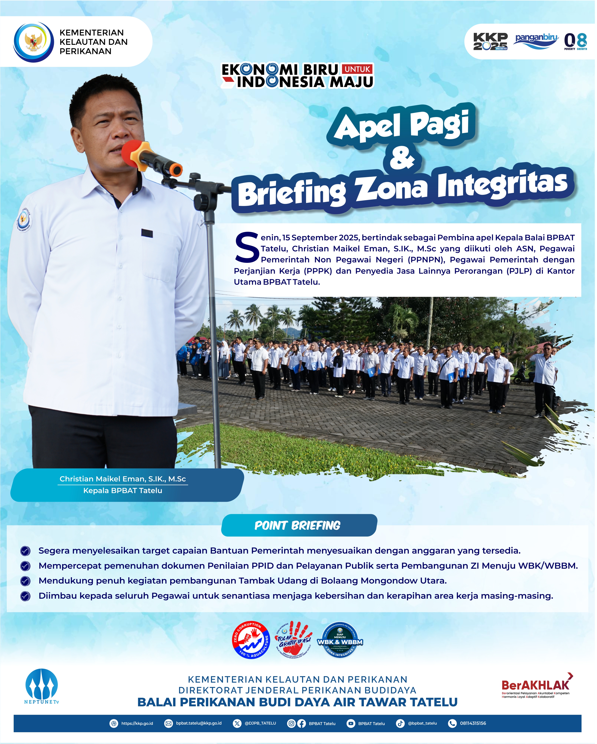 Apel Pagi dan Briefing Zona Integritas BPBAT Tatelu, Senin, 15 September 2025