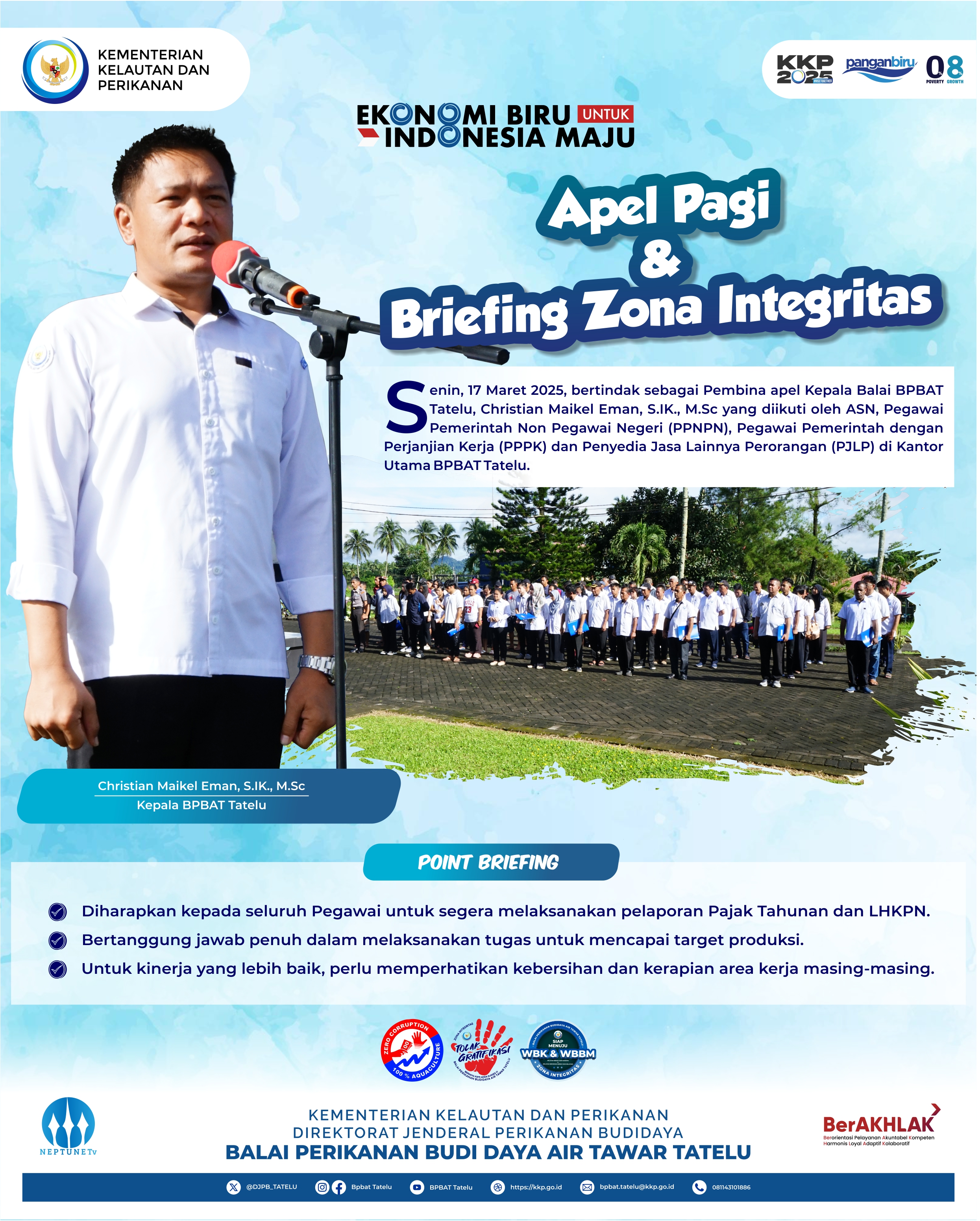 Apel Pagi dan Briefing Zona Integritas BPBAT Tatelu, Senin 17 Maret 2025