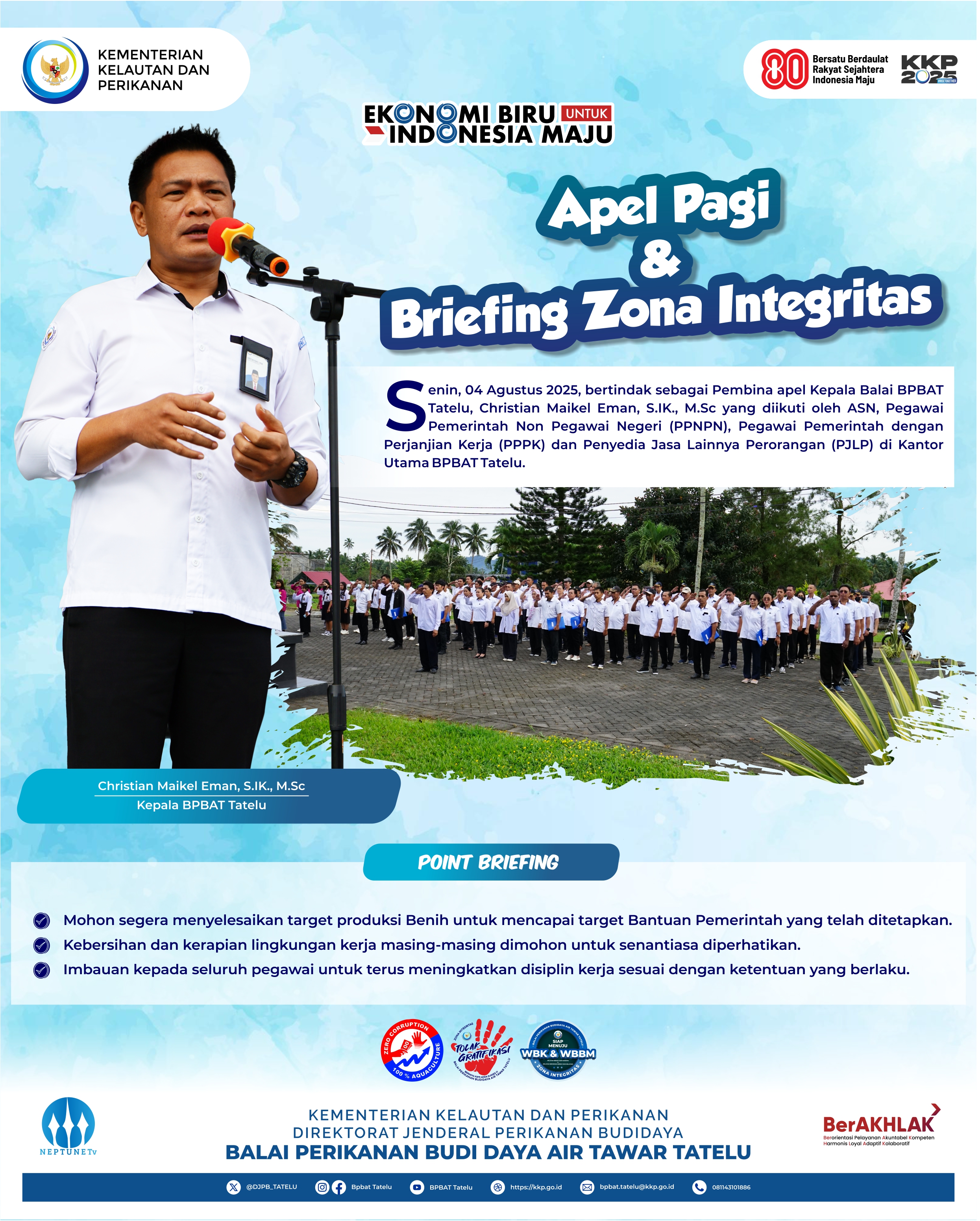 Apel Pagi dan Briefing Zona Integritas BPBAT Tatelu, Senin, 4 Agustus 2025