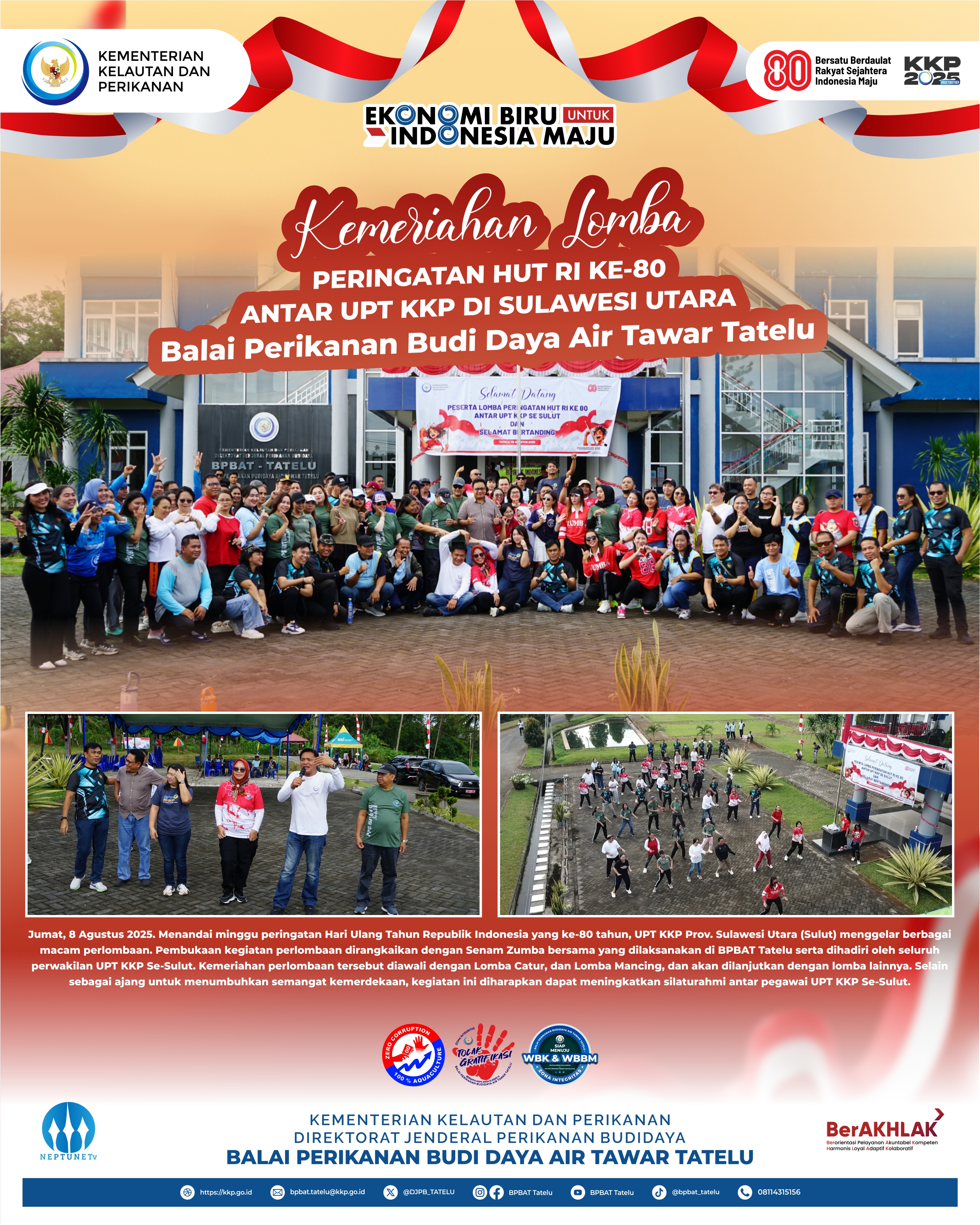 Pembukaan rangkaian perlombaan yang dilaksakanan oleh seluruh UPT KKP Prov. Sulawesi Utara (Sulut) dalam rangka memeriahkan Hari Kemerdekaan Republik Indonesia yang ke-80 tahun