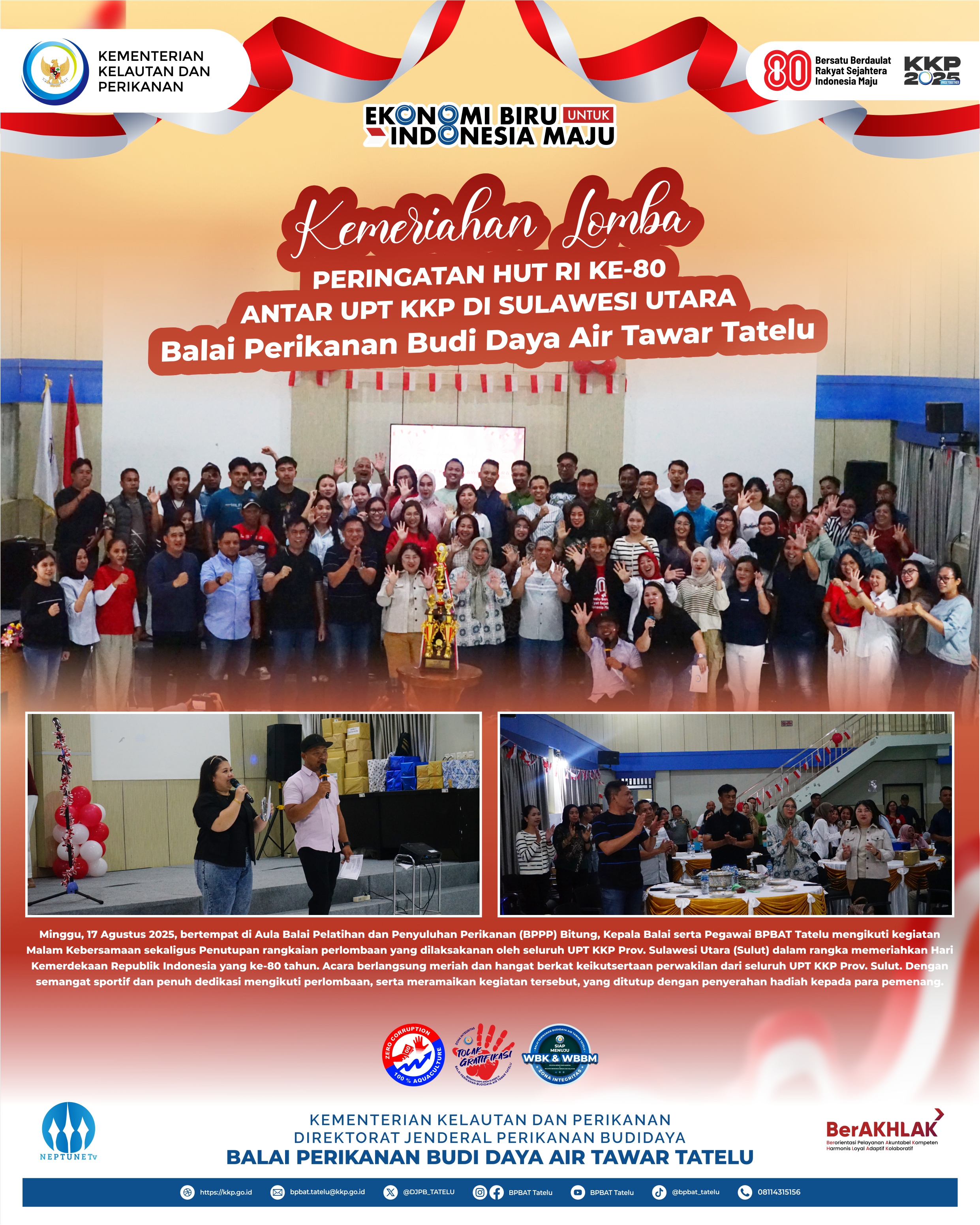 Penutupan rangkaian perlombaan yang dilaksakanan oleh seluruh UPT KKP Prov. Sulawesi Utara (Sulut) dalam rangka memeriahkan Hari Kemerdekaan Republik Indonesia yang ke-80 tahun