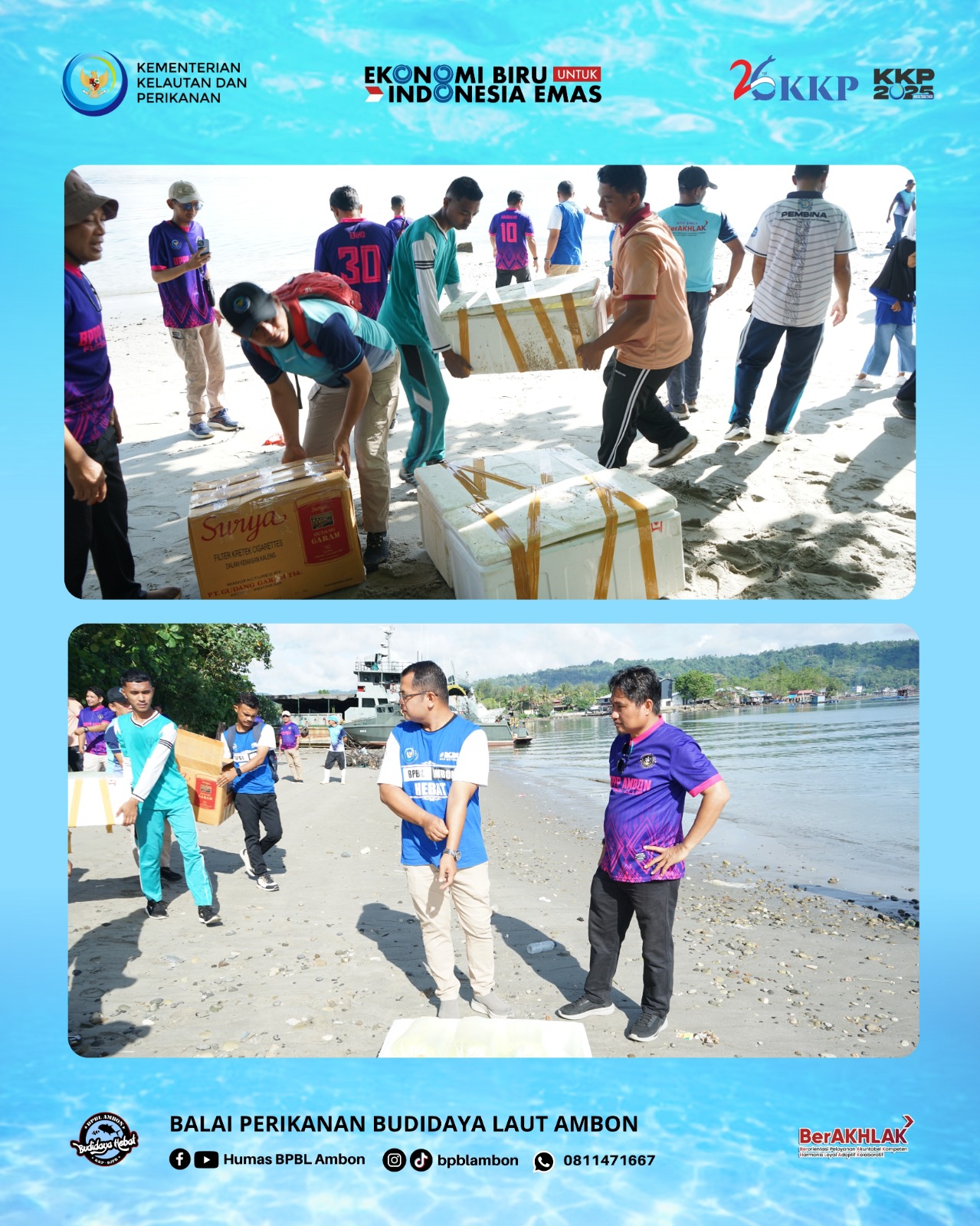 Kepala BPBL Ambon, Manijo, S.St.Pi., M.Pi., menyampaikan harapannya agar kegiatan restocking ini terus berlanjut sebagai langkah nyata menjaga keberlanjutan ekosistem perairan.