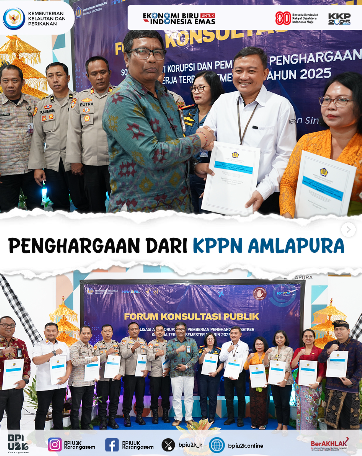 Kabar baik datang dari KPPN Amlapura yang menobatkan 4 penghargaan sekaligus untuk BPIU2K Karangasem yakni :