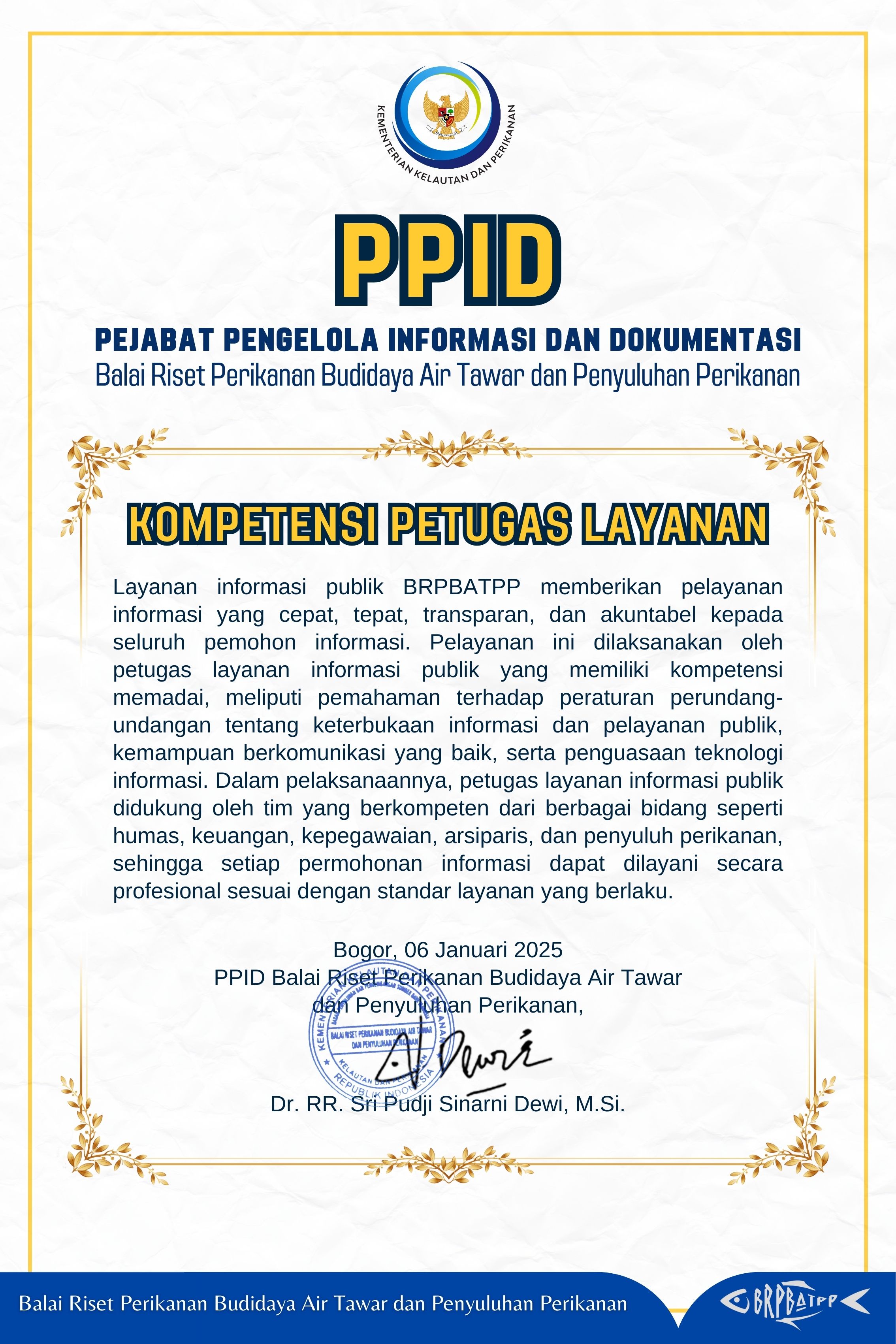 PPID BALAI RISET PERIKANAN BUDIDAYA AIR TAWAR DAN PENYULUHAN PERIKANAN, BOGOR