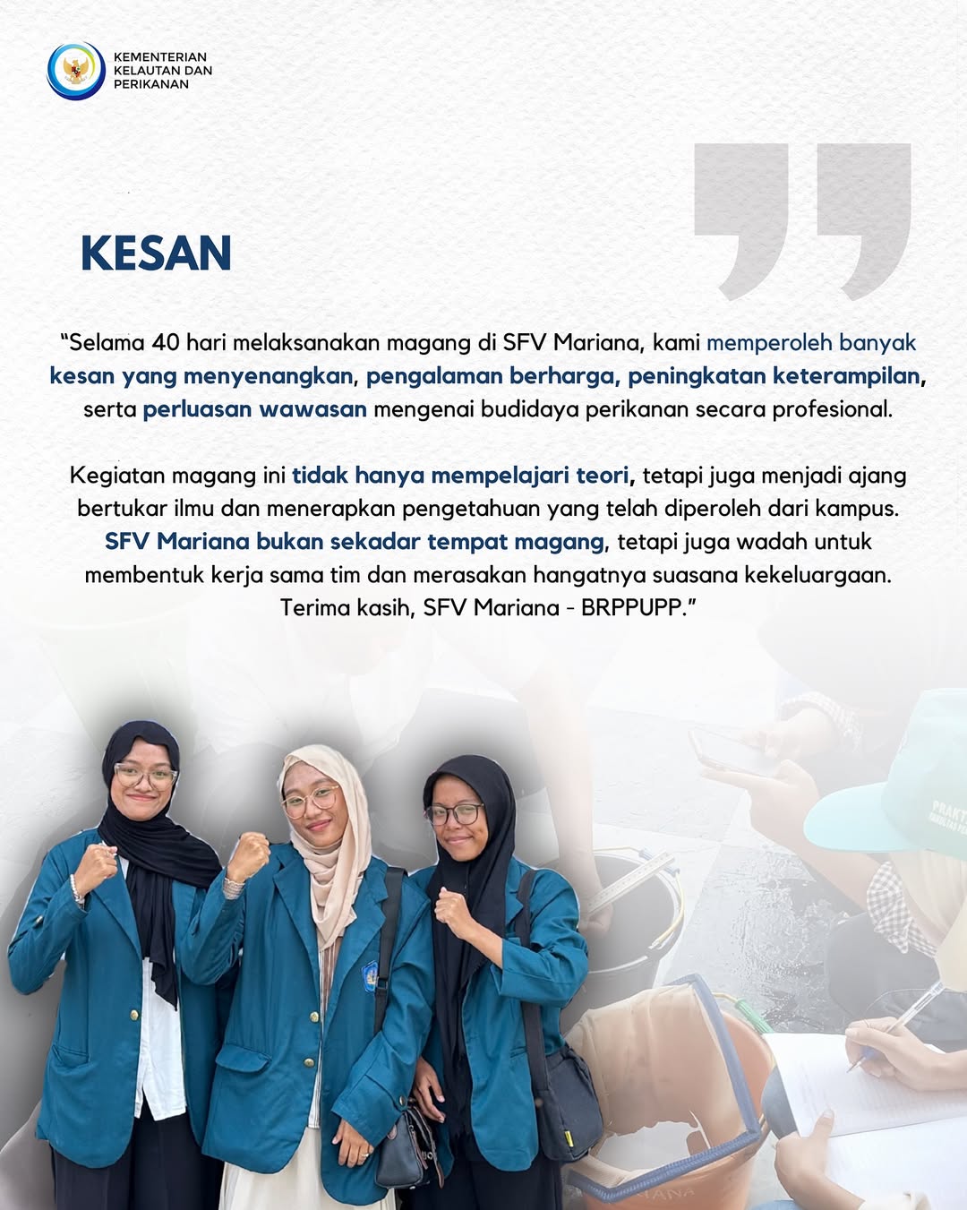 #PanganBiru #2025KKPRiseTogether #EkonomiBiruUntukIndonesiaEmas #SaktiWahyuTrenggono #KKPGOID #BRPPUPPPalembang #praktikumum #mbkm #magang #penelitian #kkn #infomagang #unila #universitaslampung #sfvmariana #smartfisheriesvillage #sfvbrppupp #sfv
