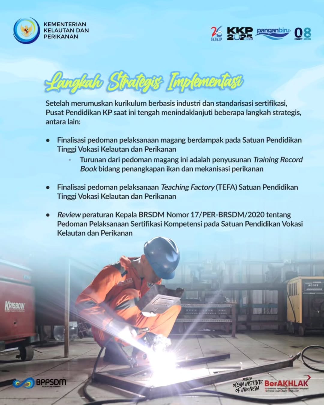 @kkpgoid melalui @bppsdm_kp bergerak mengembangkan kurikulum pendidikan vokasi Kelautan dan Perikanan berbasis industri dan standarisasi sertifikasi. Kurikulum ini dirancang untuk memberikan dampak nyata dalam peningkatkan kualitas dan kompetensi peserta didik, menjembatani kebutuhan industri dalam dan luar negeri, serta mendorong peningkatan serapan lulusan.