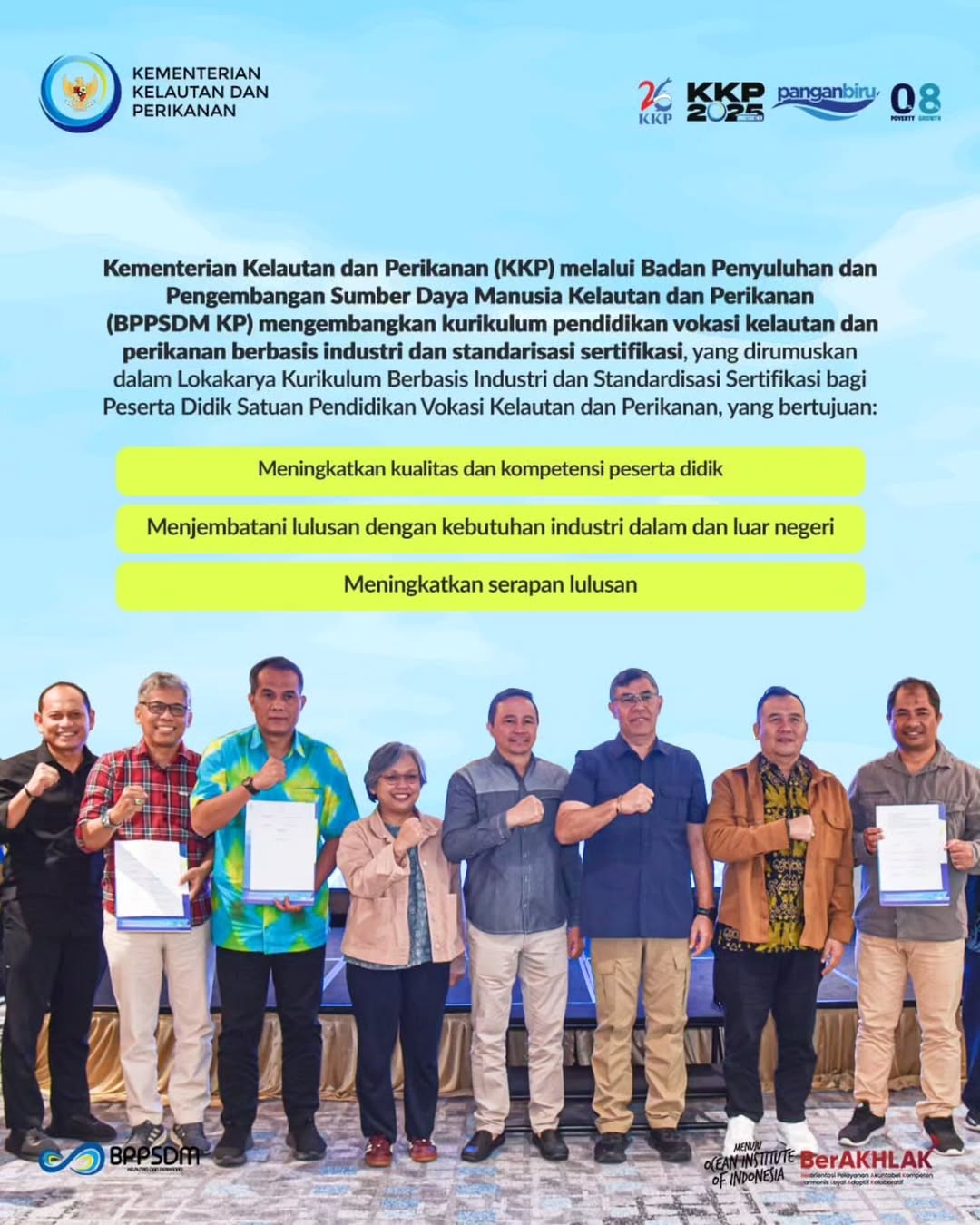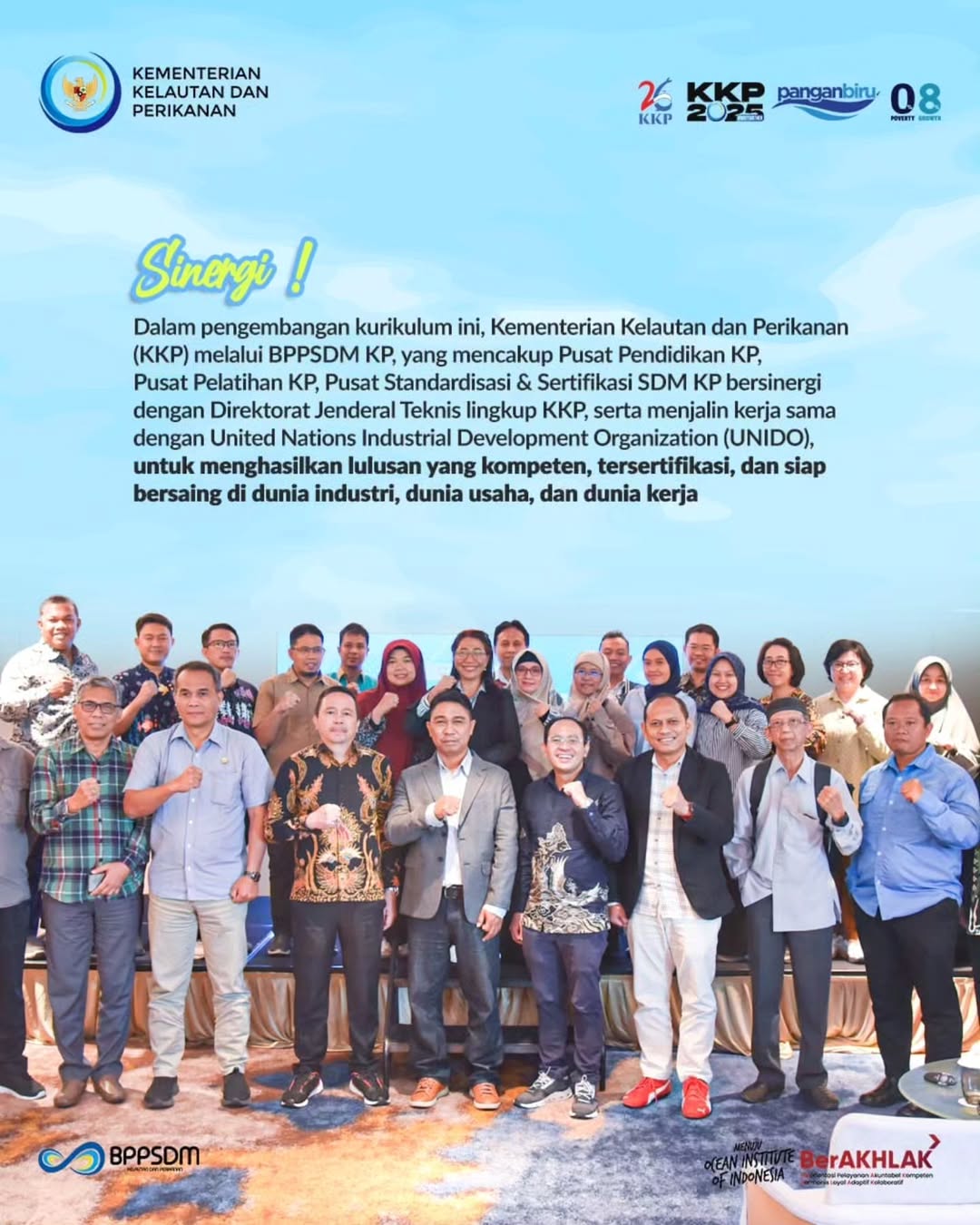 Pengembangan kurikulum ini merupakan hasil sinergi antara BPPSDM KP, Direktorat Jenderal Teknis lingkup KKP, dan UNIDO. Sebagai tindak lanjut, @bppsdm_pusdikkp sedang menyusun dokumen turunan yang lebih teknis dan terperinci guna mendukung implementasi kurikulum secara efektif.