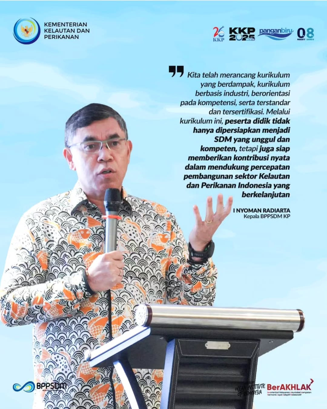 Kepala #BPPSDMKP @inradiarta tegaskan, melalui kurikulum yang telah dirancang ini, peserta didik tidak hanya dipersiapkan menjadi #SDMUnggul dan kompeten, tetapi juga siap memberikan kontribusi nyata dalam mendukung percepatan pembangunan sektor Kelautan dan Perikanan Indonesia yang berkelanjutan.