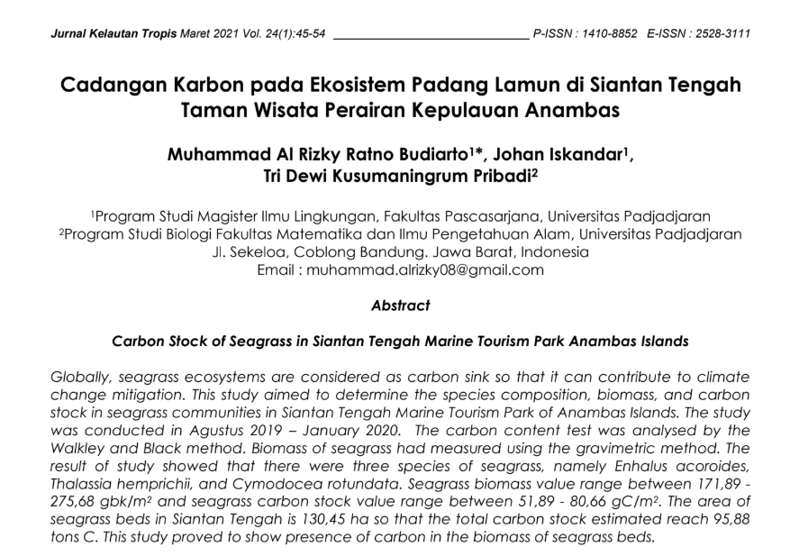 AJI SPESIAL (Artikel Jurnal Ilmiah Spesifik Konservasi Alam Laut) lingkup LKKPN Pekanbaru