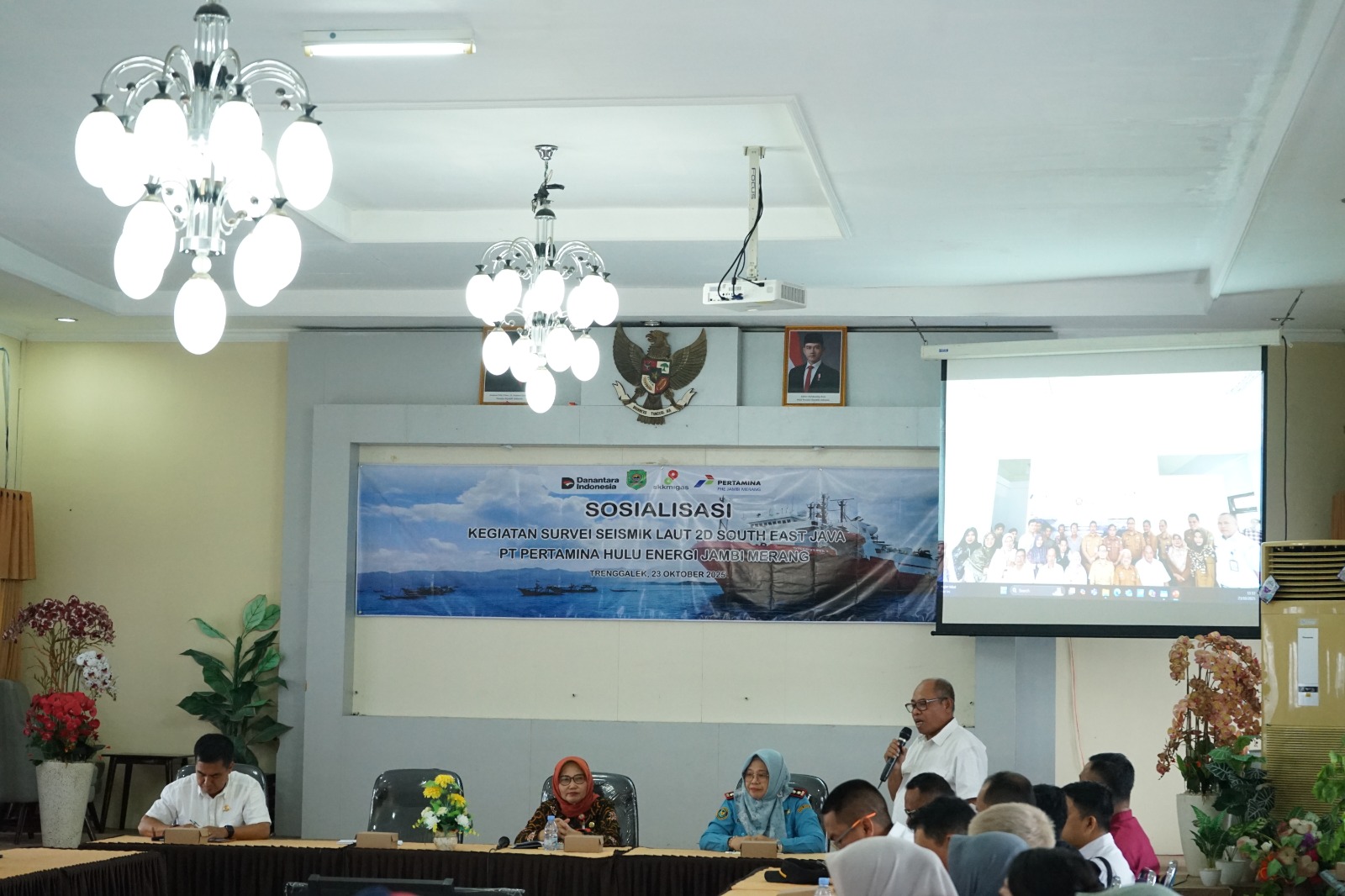 Kegiatan ini dihadiri oleh perwakilan nelayan, aparat TNI/POLRI, serta instansi terkait. Tujuan dari kegiatan ini yaitu memberikan pemahaman yang jelas mengenai tujuan, manfaat, serta pelaksaan kegiatan survey seismik laut tersebut. Kegiatan Survei Seismik Laut 2D ini merupakan salah satu tahapan awal dalam eksplorasi minyak dan gas bumi, yang bertujuan untuk memetakan struktur bawah permukaan laut guna mengidentifikasi potensi sumber daya energi.