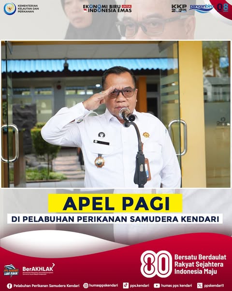 Pelabuhan Perikanan Samudera (PPS) Kendari melaksanakan apel pagi pada hari Senin, 28 Juli 2025. Bertindak sebagai Pembina Apel adalah Kepala PPS Kendari Bapak Asep Saepulloh.