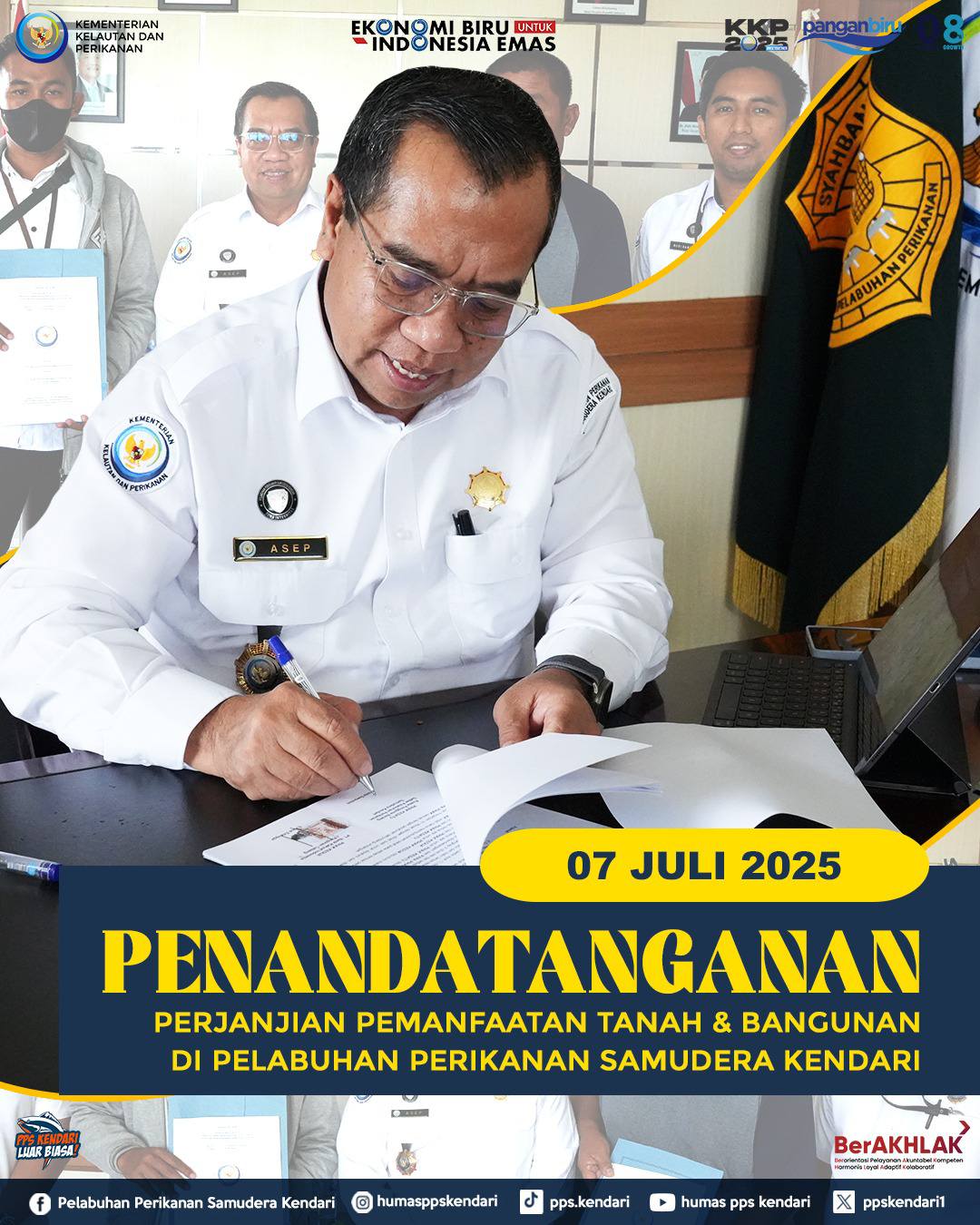 Kepala Pelabuhan Perikanan Samudera Kendari @asep_aksa didampingi Katimja Pelayanan Usaha melakukan penandatangan perjanjian sewa tanah dan bangunan dengan Usaha Perorangan a.n Ahmad serta dengan Usaha Bank BRI Cabang Kendari.