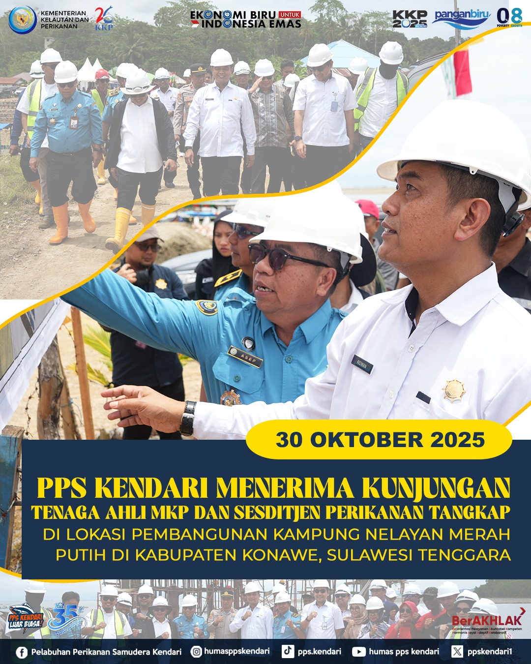 PPS Kendari menerima kunjungan Tenaga Ahli MKP dan Sesditjen Perikanan Tangkap dalam rangka monitoring progres pembangunan Kampung Nelayan Merah Putih di Desa Sorue Jaya, Kabupaten Konawe, Sulawesi Tenggara.