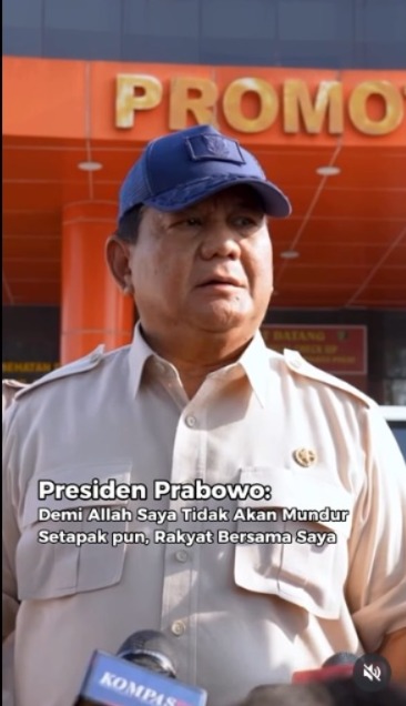 Presiden RI Bapak Prabowo menegaskan komitmennya untuk tidak akan pernah mundur menghadapi mafia dan koruptor