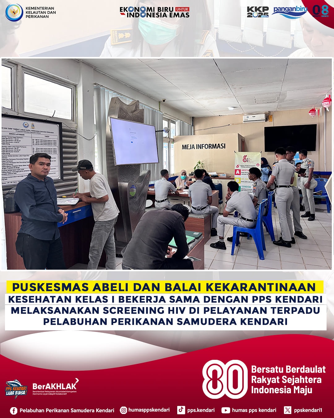 Puskesmas Abeli dan Balai Kekarantinaan Kesehatan Kelas I Kota Kendari bekerjasama dengan PPS Kendari gelar screening HIV di Pelayanan Terpadu PPS Kendari. Deteksi dini tanpa stigma, untuk masyarakat yang lebih sehat dan peduli.