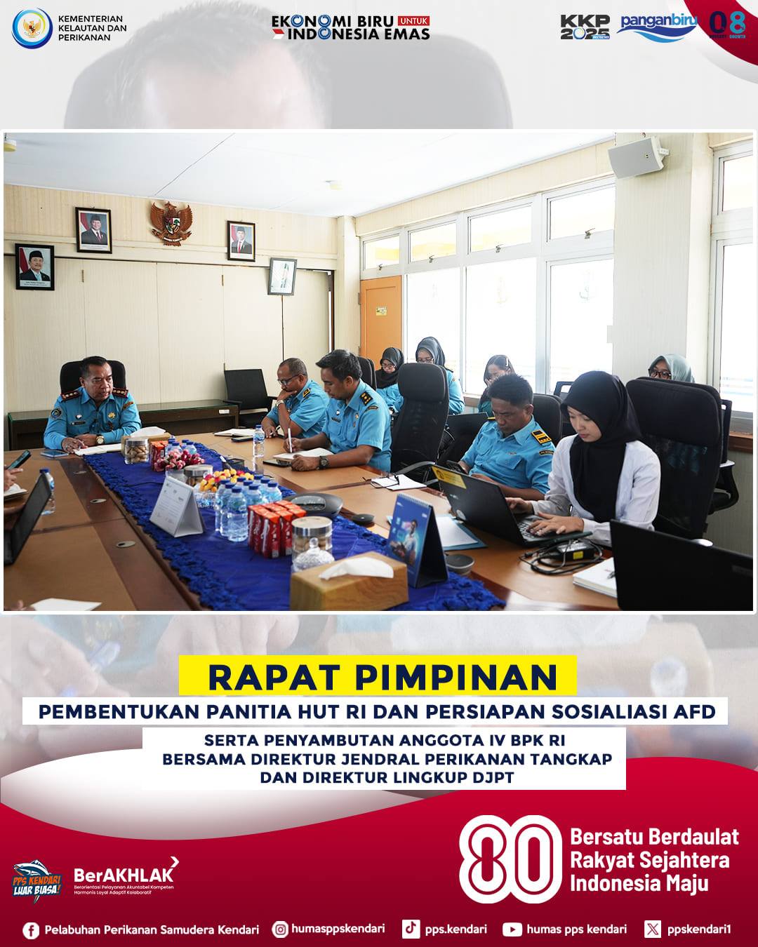 Rapat Pimpinan Pembentukan Panitia HUT RI dan Persiapan Sosialisasi AFD Serta Penyambutan Anggota IV BPK-RI Bersama Direktur Jenderal Perikanan Tangkap dan Direktur Lingkup DJPT