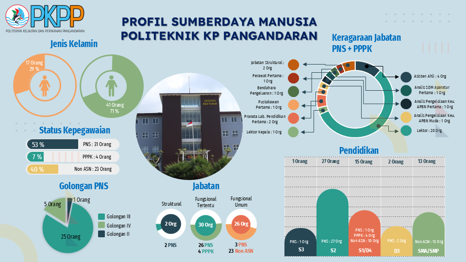 Secara umum, statistik dari pegawai yang ada di Politeknik Kelautan dan Perikanan Pangandaran adalah sebagai berikut :