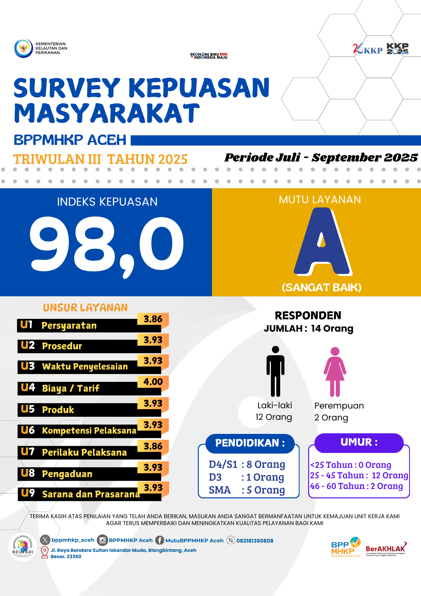 Survey Kepuasan Masyarakat TW III Tahun 2025 Badan Mutu KKP Aceh