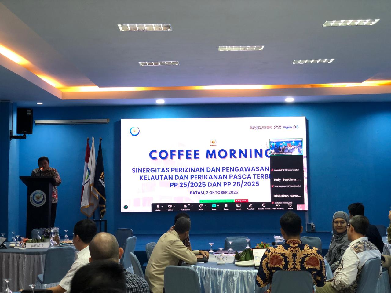 kegiatan Coffee Morning yang akan membahas Peraturan Pemerintah (PP) Nomor 25 Tahun 2025, PP Nomor 28 Tahun 2025, serta Peraturan Menteri Kelautan dan Perikanan (Permen KP) Nomor 30 Tahun 2024.