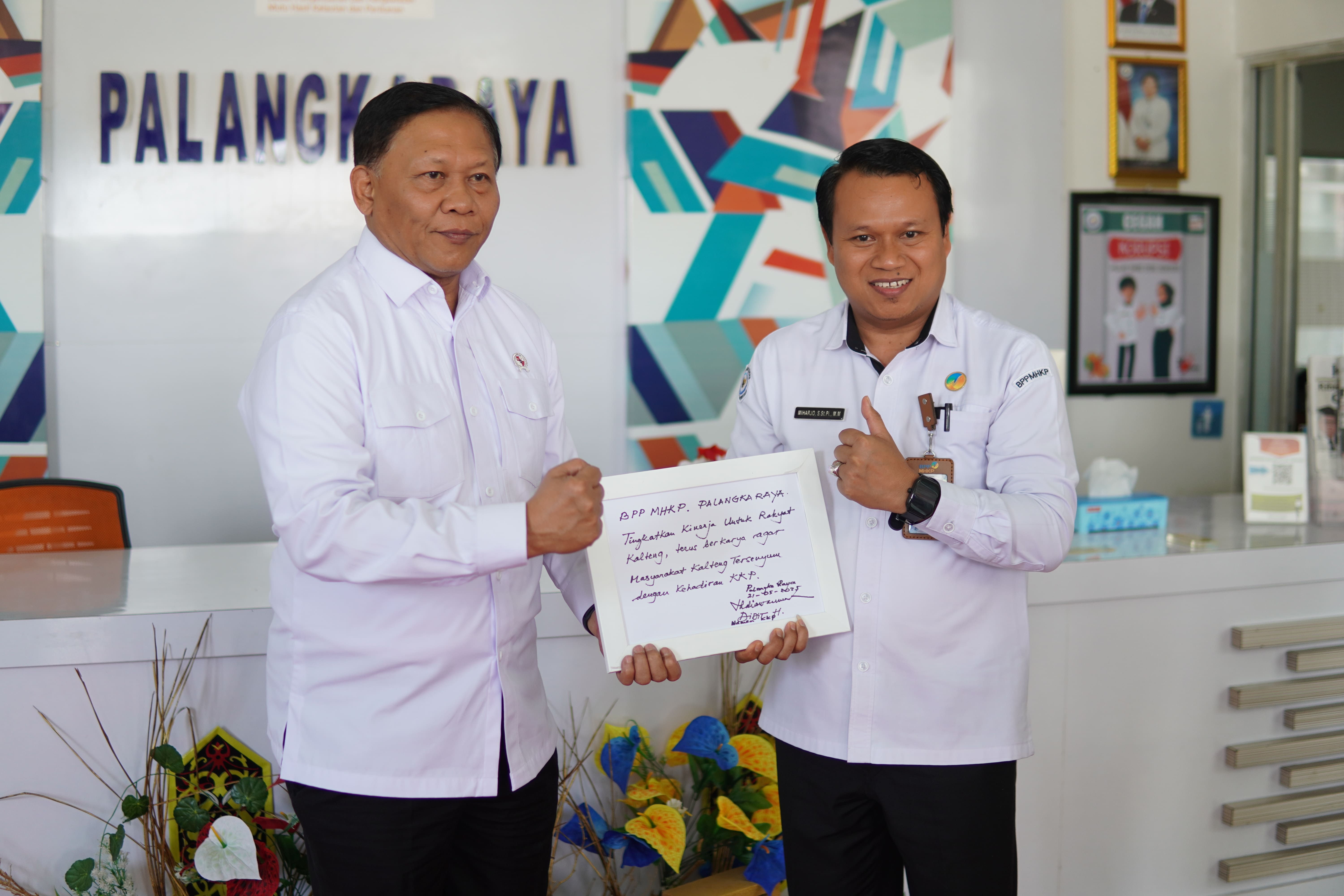 Saat kunjungannya di kantor UPT Badan Mutu KKP Kalimantan Tengah, Beliau menginstruksikan agar UPT Badan Mutu KKP Kalimantan Tengah terus bersinergi bersama Dinas Perikanan Kota Palangka Raya dan Dinas Perikanan Provinsi Kalimantan Tengah serta instansi terkait agar bersama melaksanakan tugas pokok dan fungsi Badan Mutu sebagai eksistensinya di Provinsi Kalimantan Tengah.