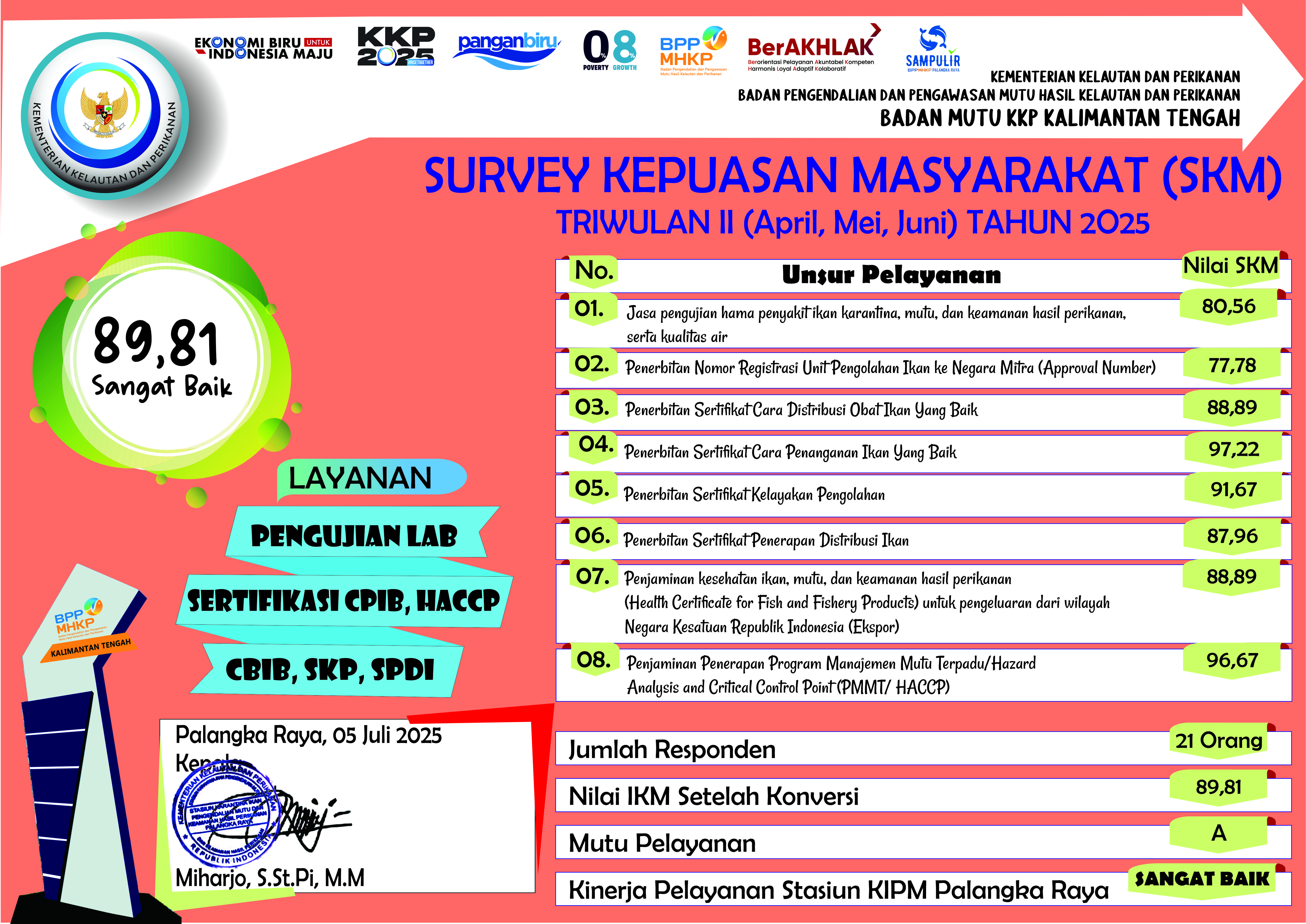 Survey Kepuasan Masyarakat Badan Mutu KKP Palangka Raya Triwulan II Tahun 2025
